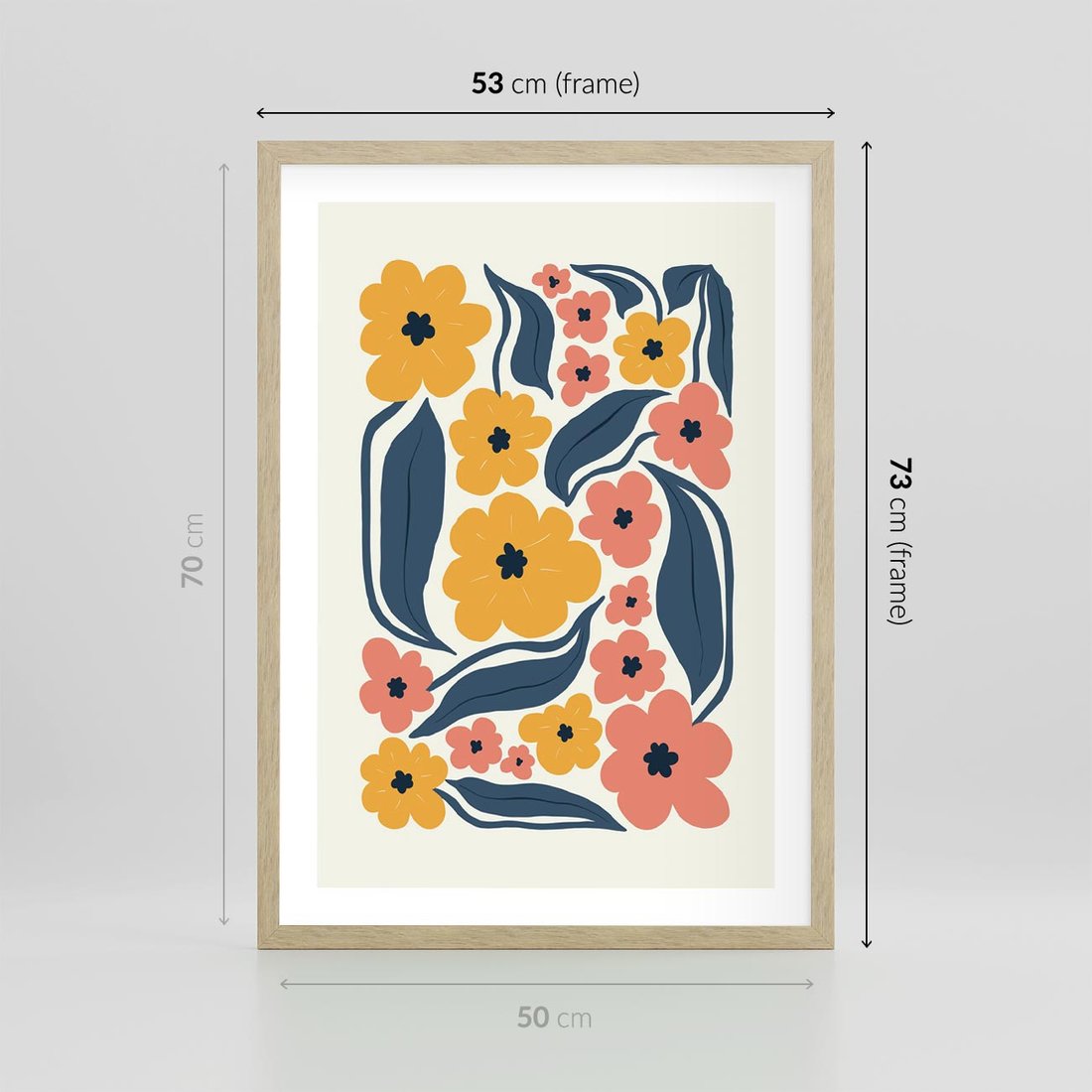 Plakat w ramie 50x70 - Pastelowe Impresje - pastelowe kwiaty, abstrakcyjna kompozycja - rama drewno