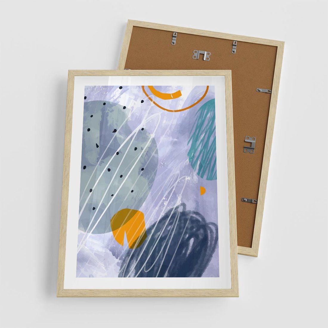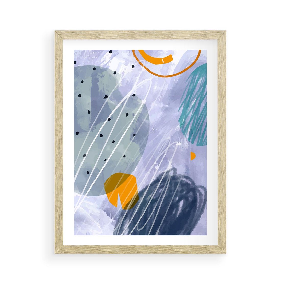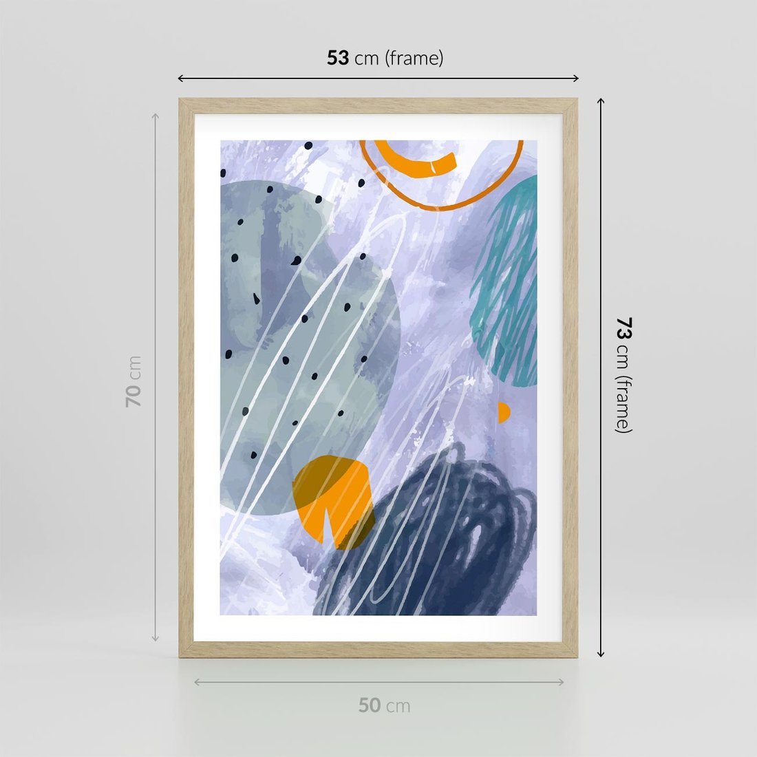 Plakat w ramie 50x70 - Pastelowe Przenikanie - abstrakcyjny plakat do młodzieżowego pokoju, granaty fiolety - rama drewno
