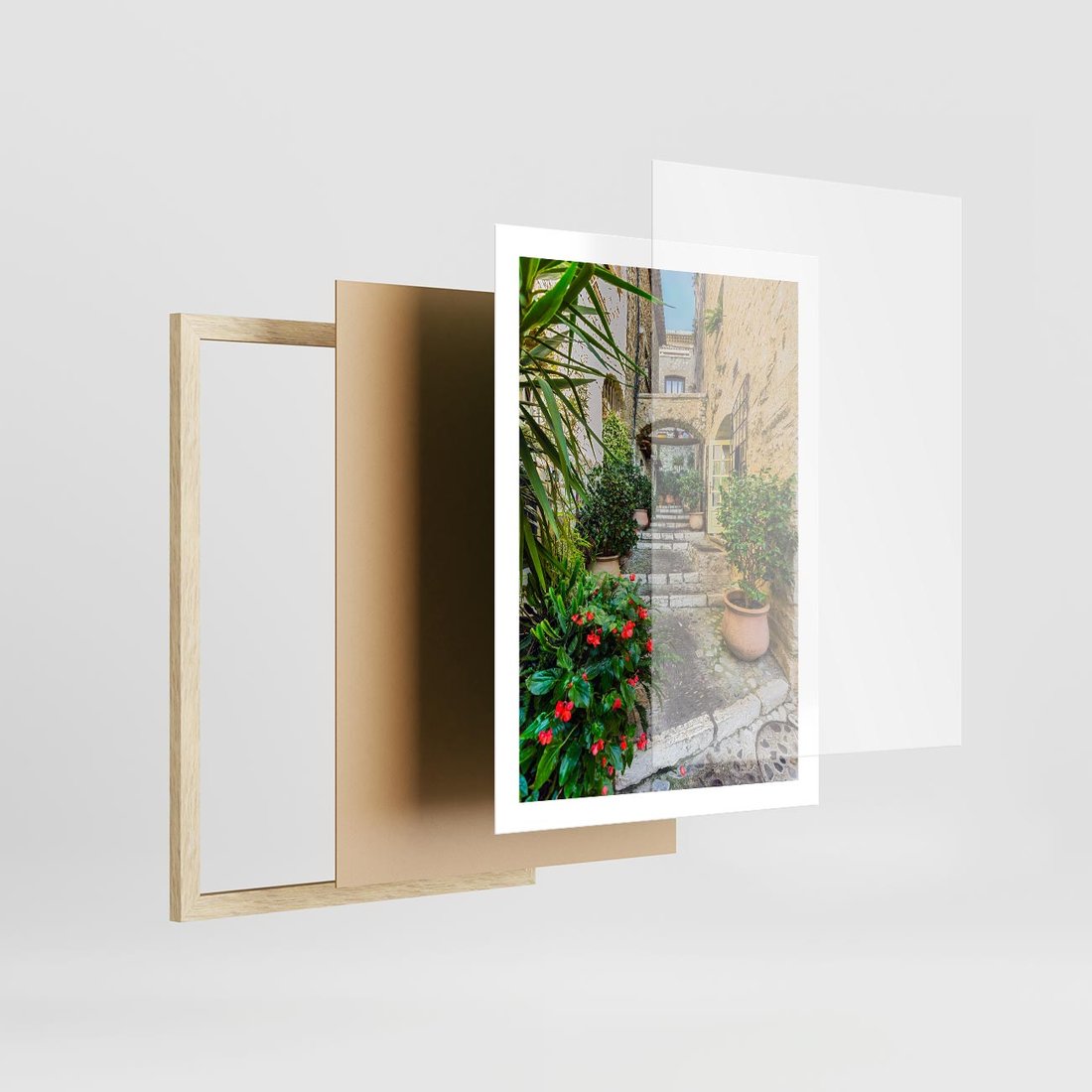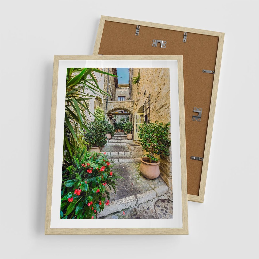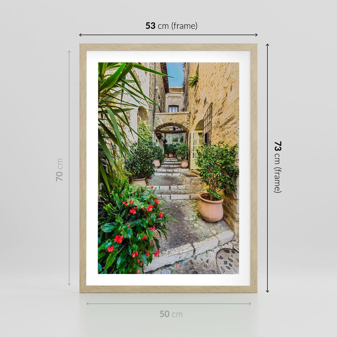 Plakat w ramie 50x70 - Perspektywa uliczki malownicza - uliczka, perspektywa - rama drewno