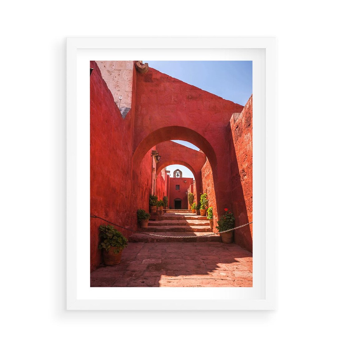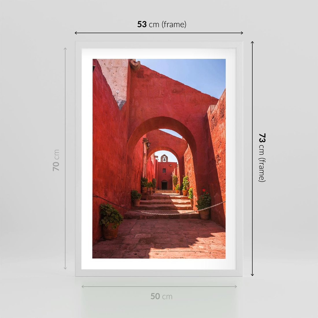 Plakat w ramie 50x70 - Perspektywa Uliczki - uliczka, perspektywa - rama biała