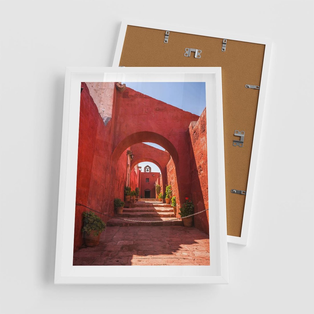 Przenieś się w świat tajemniczej uliczki dzięki temu obrazowi. Linie horyzontu, gra świateł i cieni oraz głębia perspektywy tworzą fascynującą aurę. Idealny dla miłośników miejskich krajobrazów i tych, którzy pragną przenieść się w magiczny świat architektury.