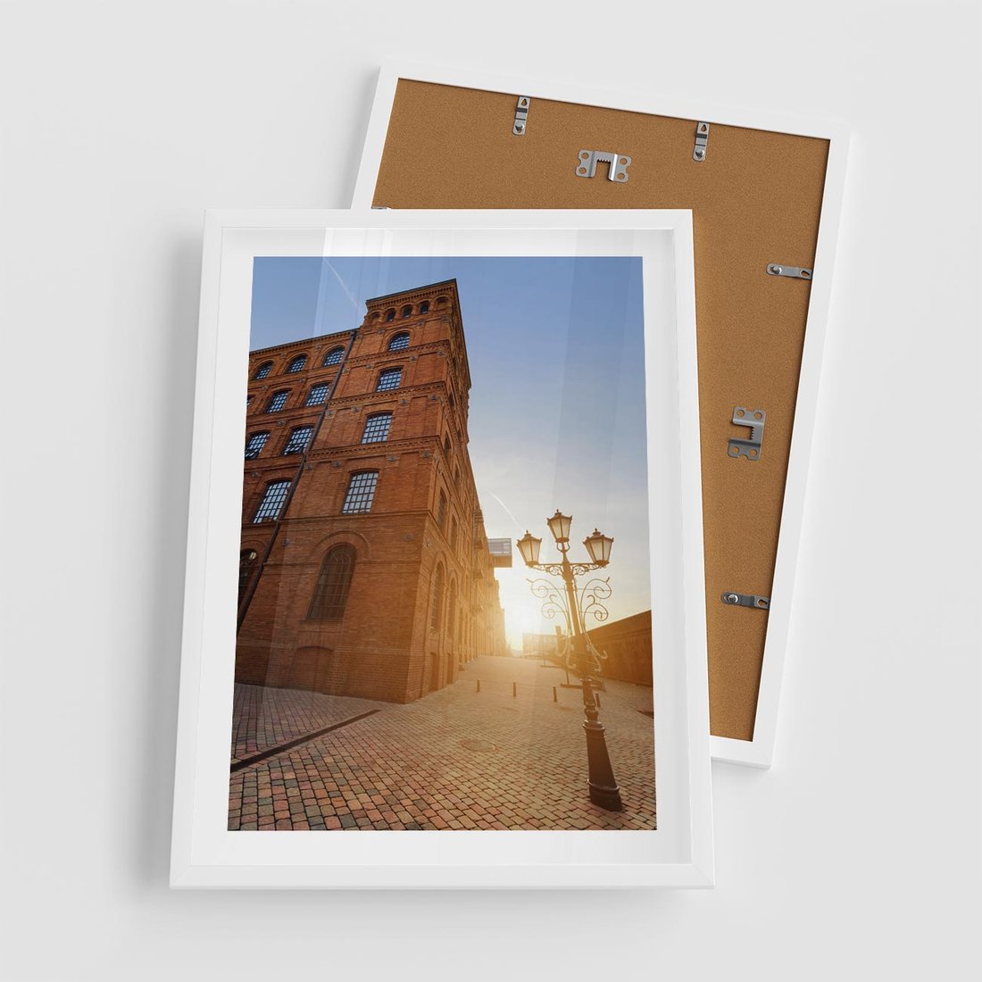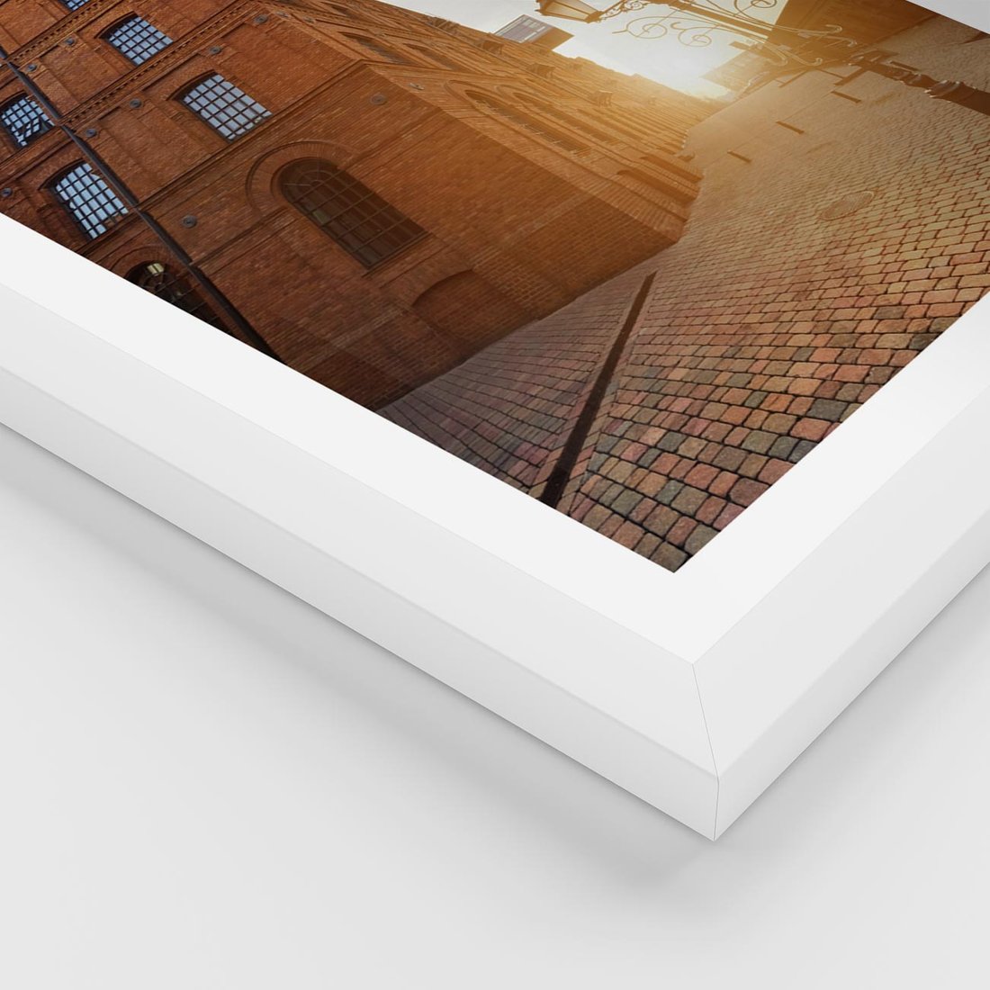 Plakat w ramie 50x70 - Perspektywa uliczki - uliczka, perspektywa - rama biała