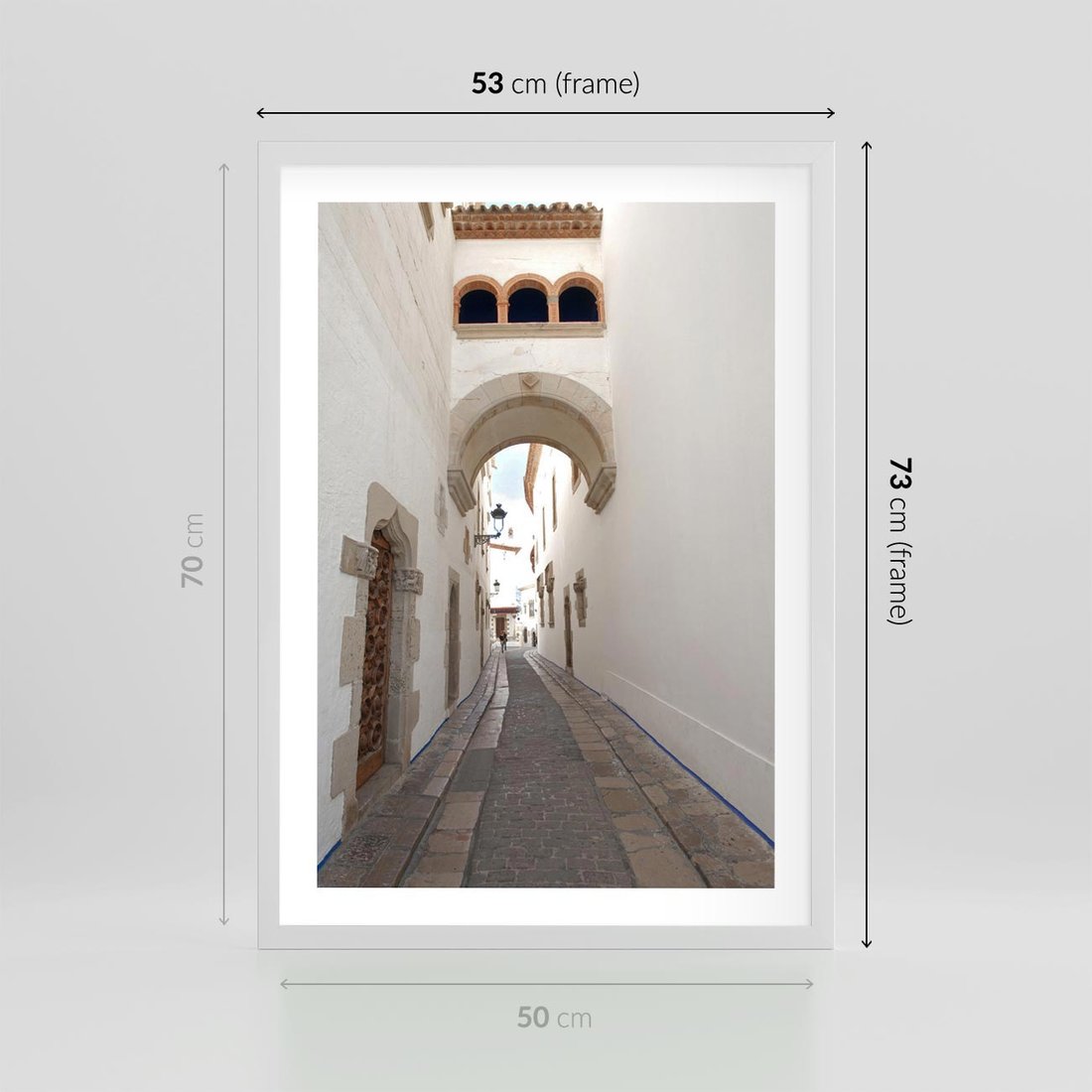 Plakat w ramie 50x70 - Perspektywiczna Magia Uliczki - uliczka, perspektywa - rama biała