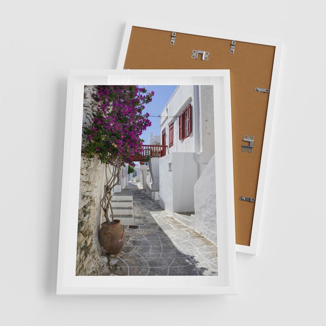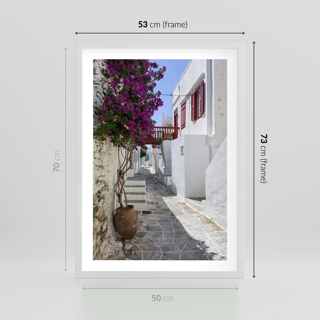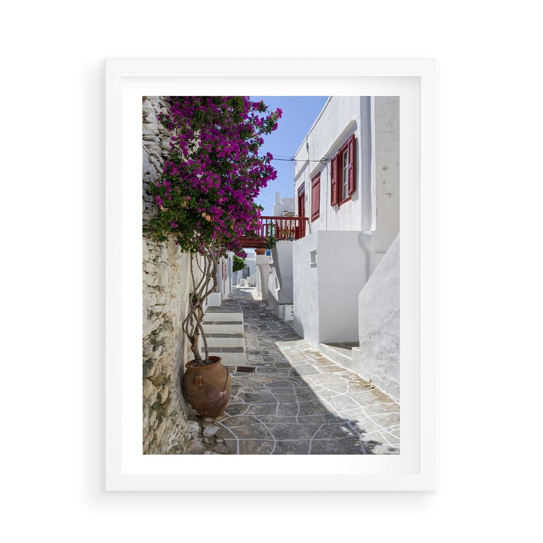 Plakat w ramie 50x70 - Perspektywiczna Uliczka: Miejski Labirynt - uliczka, perspektywa - rama biała