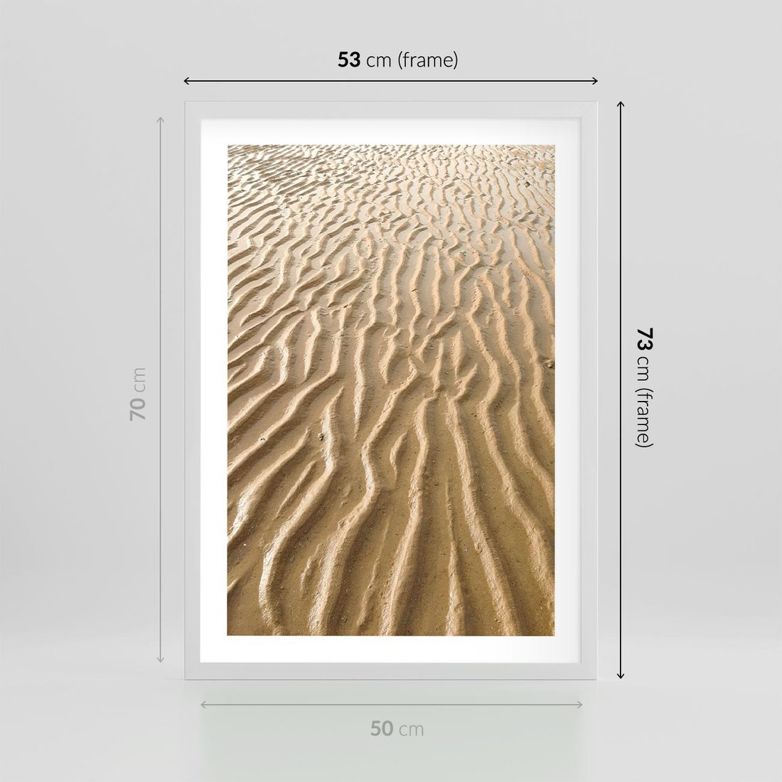 Plakat w ramie 50x70 - Piasek i Nieskończoność - pustynia, piasek - rama biała