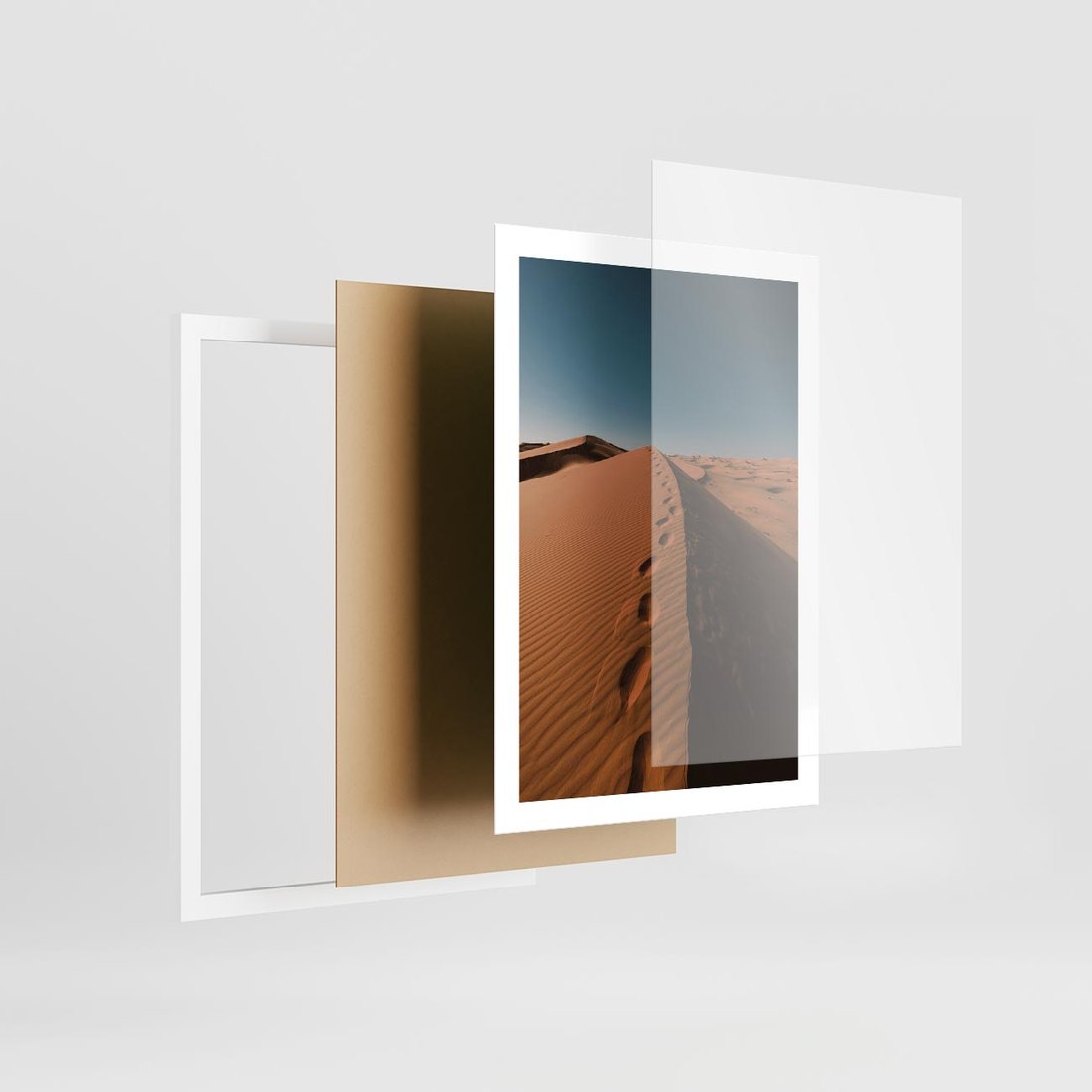 Plakat w ramie 50x70 - Piasek pustyni w ogniu - pustynia, piasek - rama biała