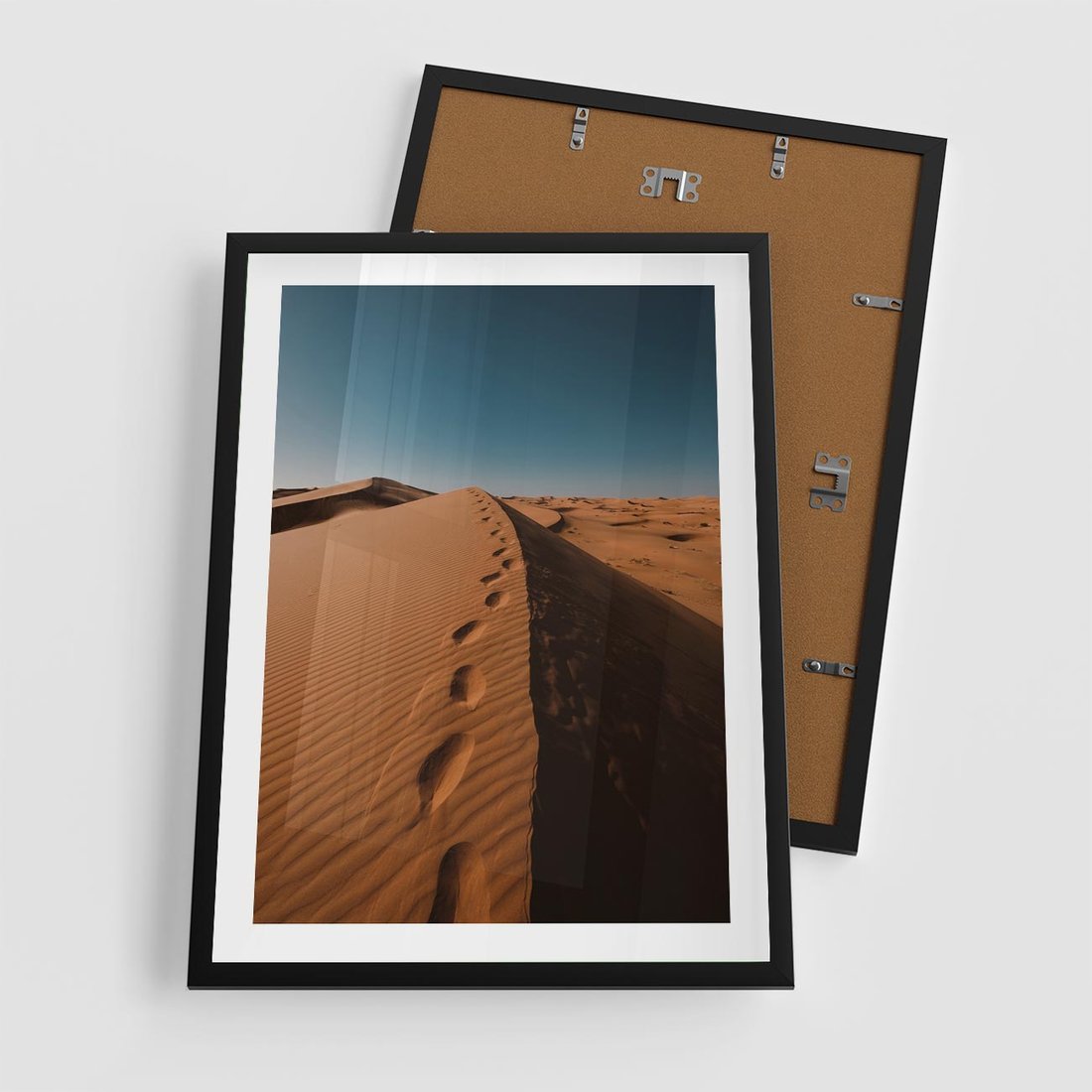 Plakat w ramie 50x70 - Piasek pustyni w ogniu - pustynia, piasek - rama czarna