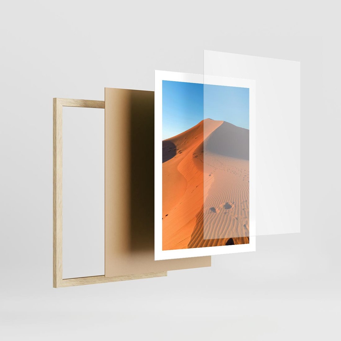 Plakat w ramie 50x70 - Piasek pustyni wędruje - pustynia, piasek - rama drewno