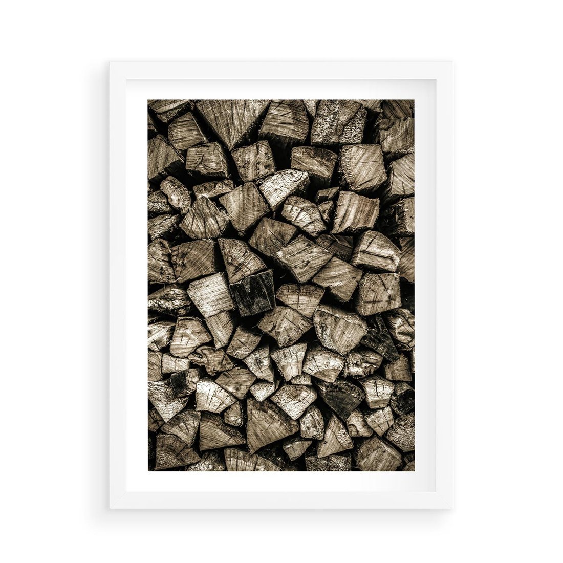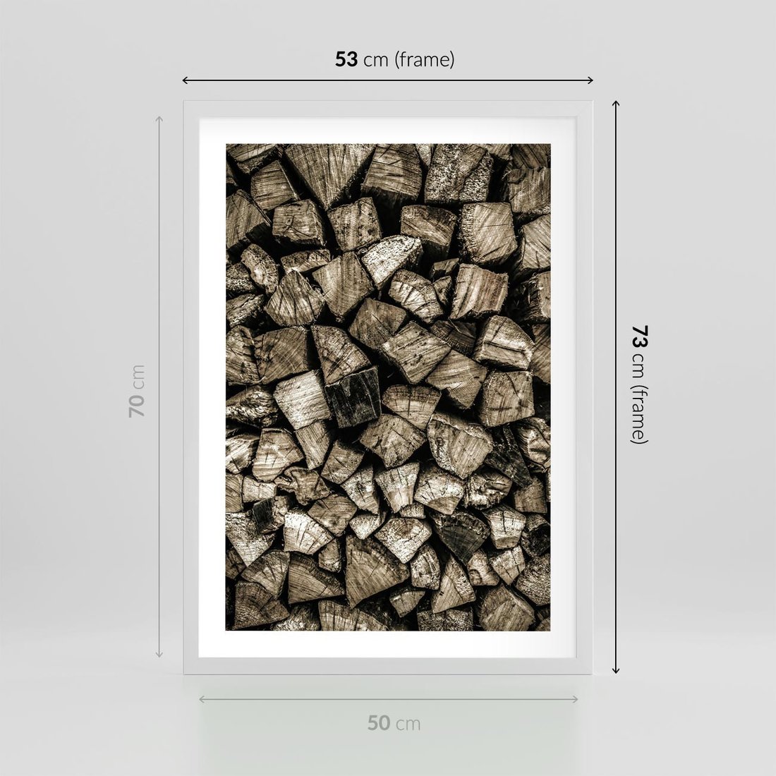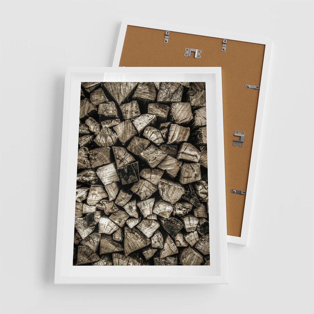 Plakat w ramie 50x70 - Piękno Drewna - belki drewna, drewno - rama biała