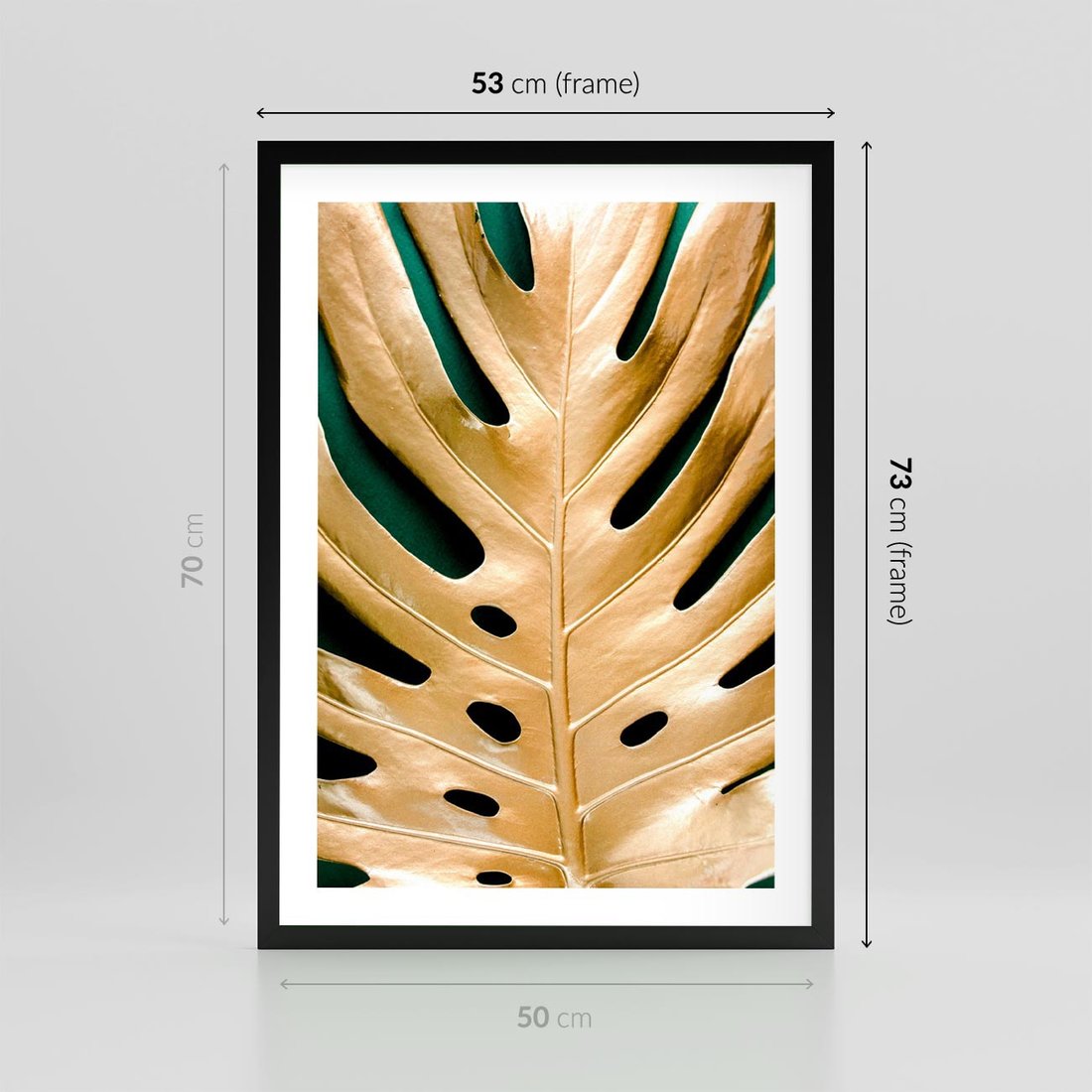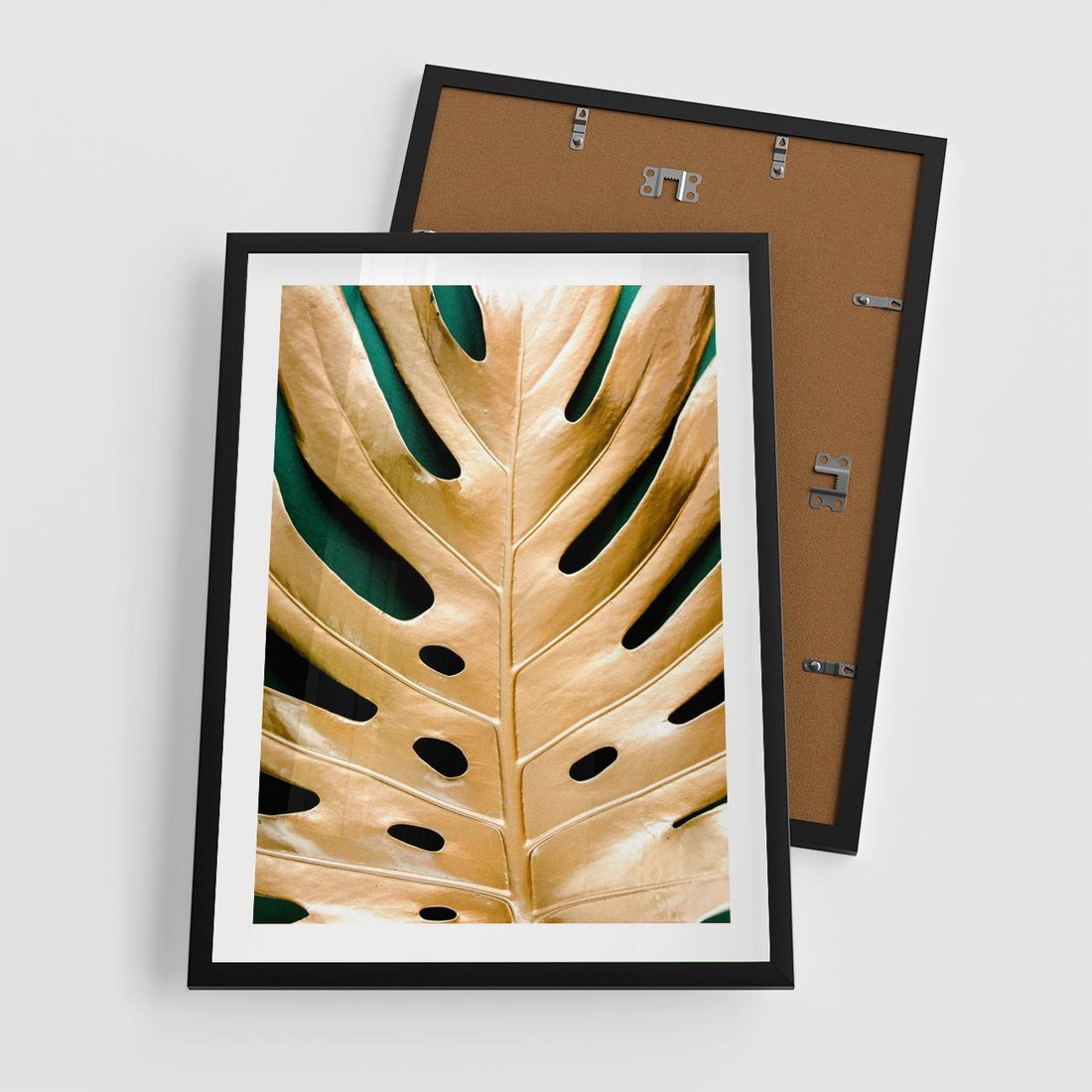 Odkryj piękno i styl złotych liści monstera na obrazie. Dodaj swojemu wnętrzu wyjątkowego uroku i odczuj elegancję, która emanuje z tej minimalistycznej kompozycji.