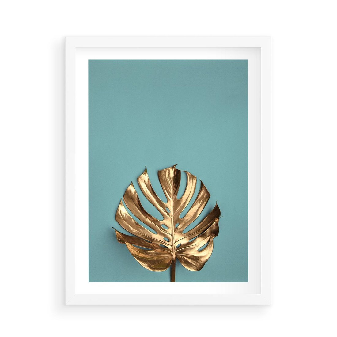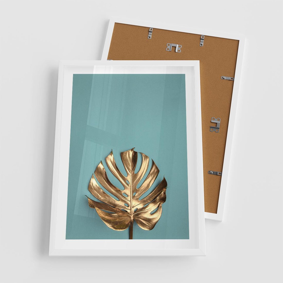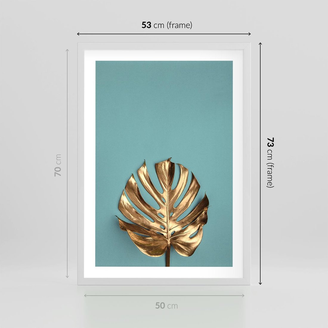 Przenieś piękno natury do swojego wnętrza za pomocą obrazu przedstawiającego złote liście monstera. Odczuj siłę i urok natury, które ożywają w tej minimalistycznej kompozycji.
