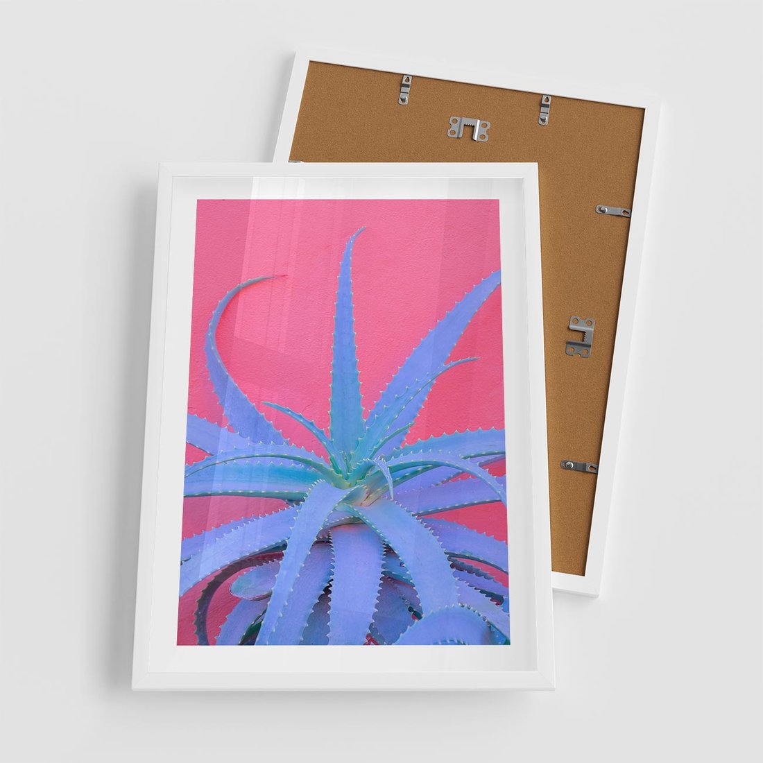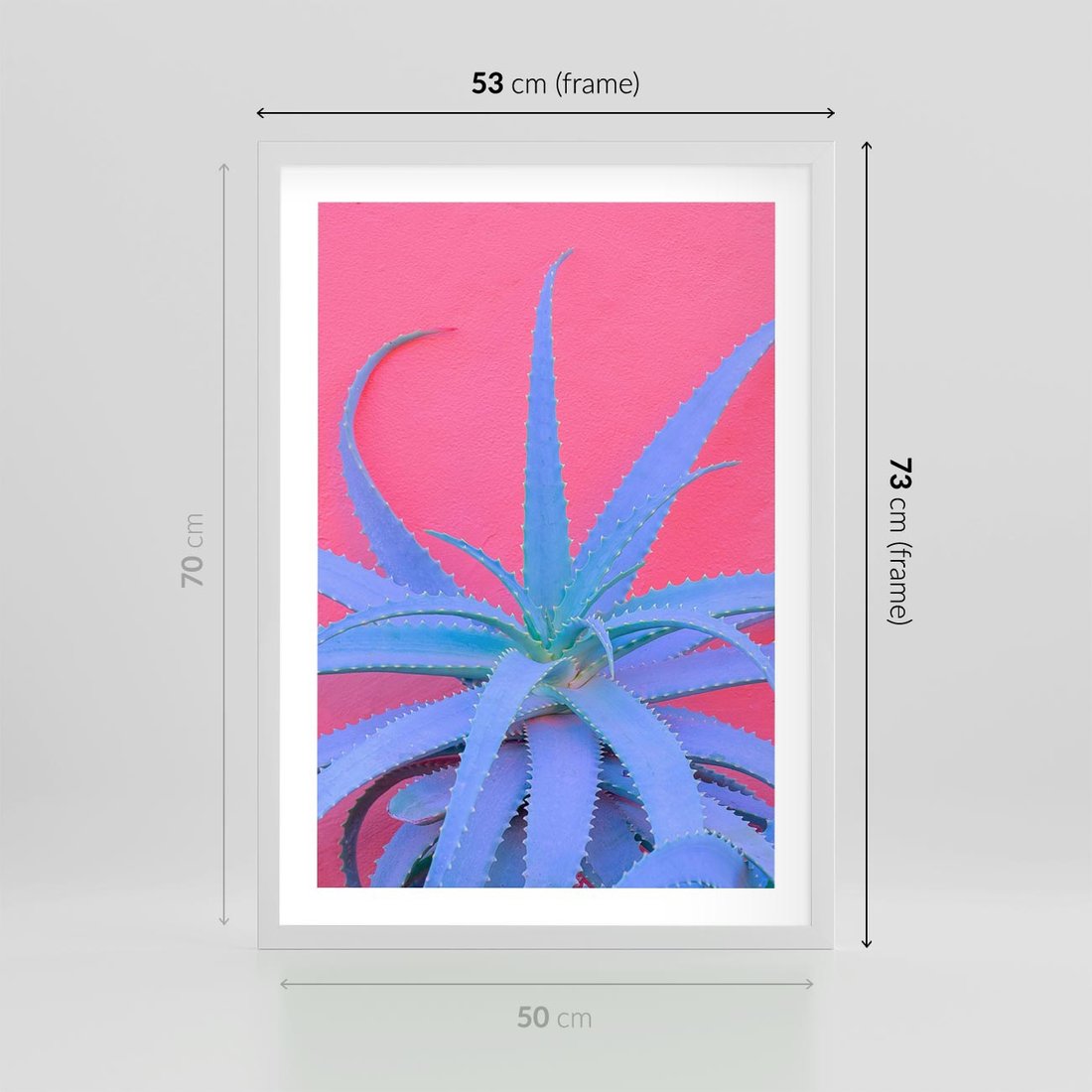 Plakat w ramie 50x70 - Piękno Pustyni - kaktusy, liście - rama biała