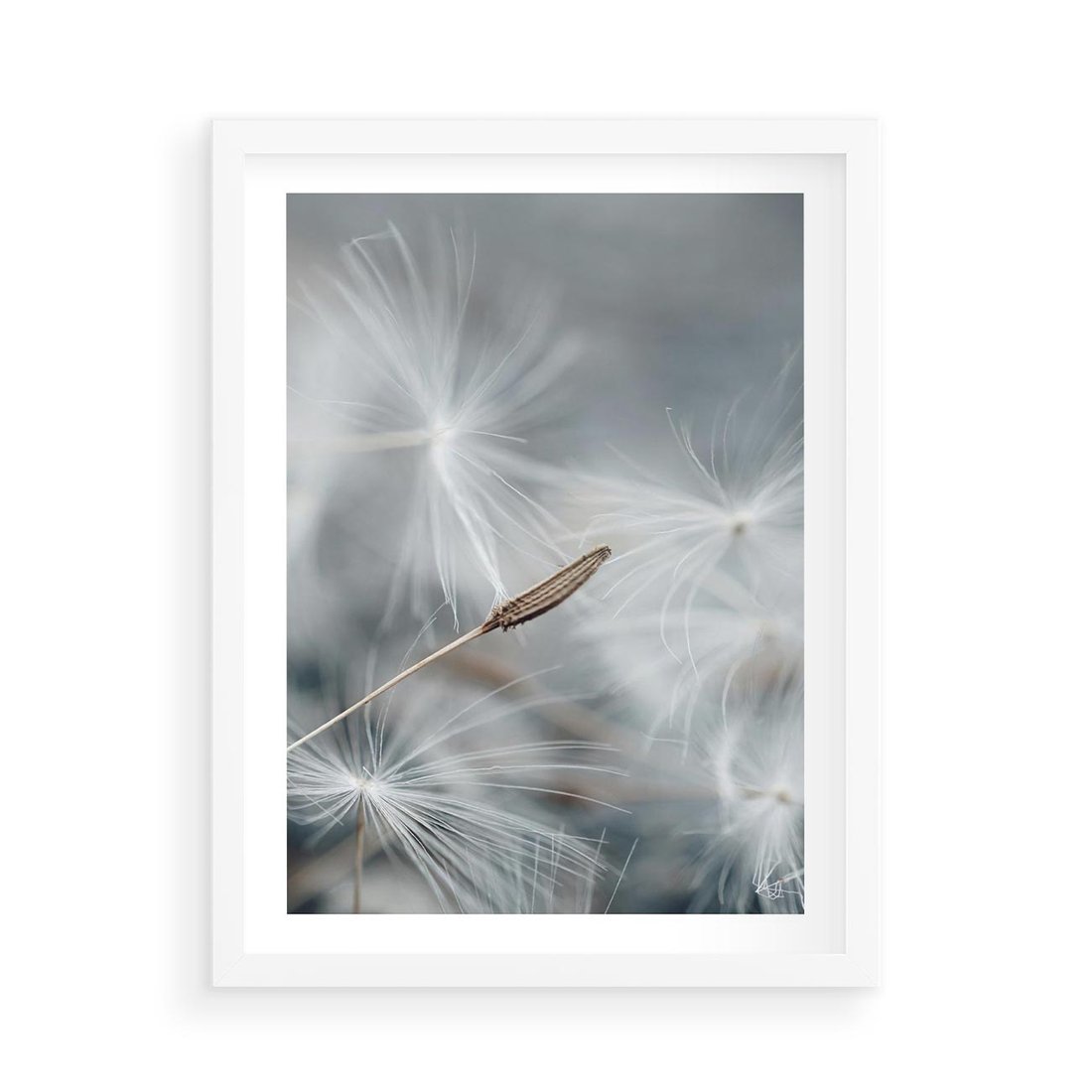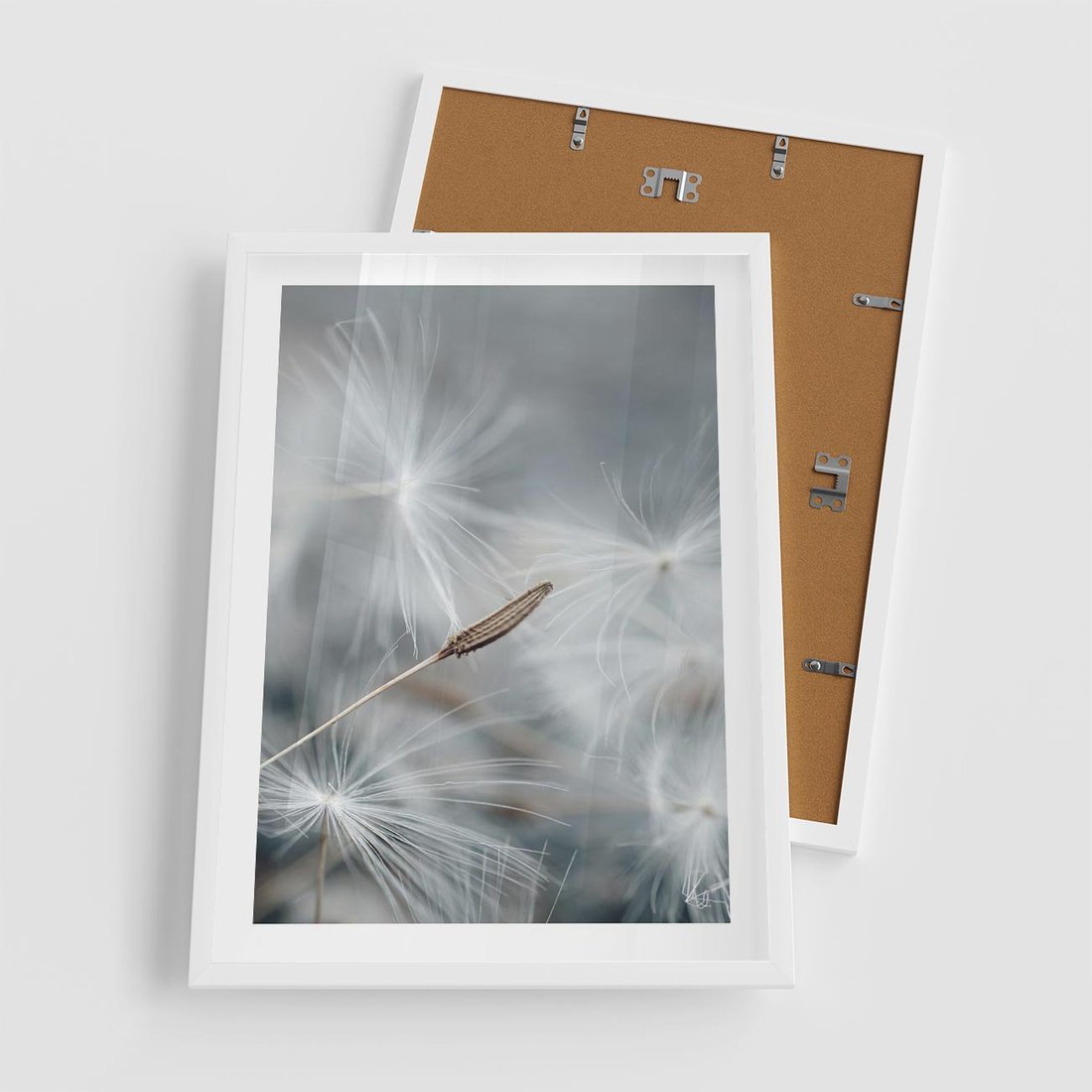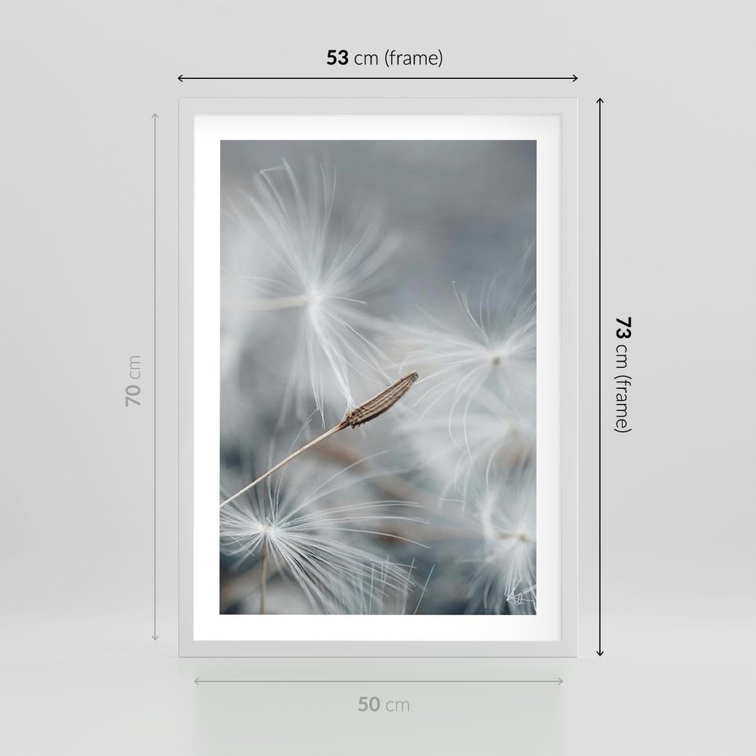 Plakat w ramie 50x70 - Piękno w Delikatności - dmuchawiec, makro zdjęcie - rama biała