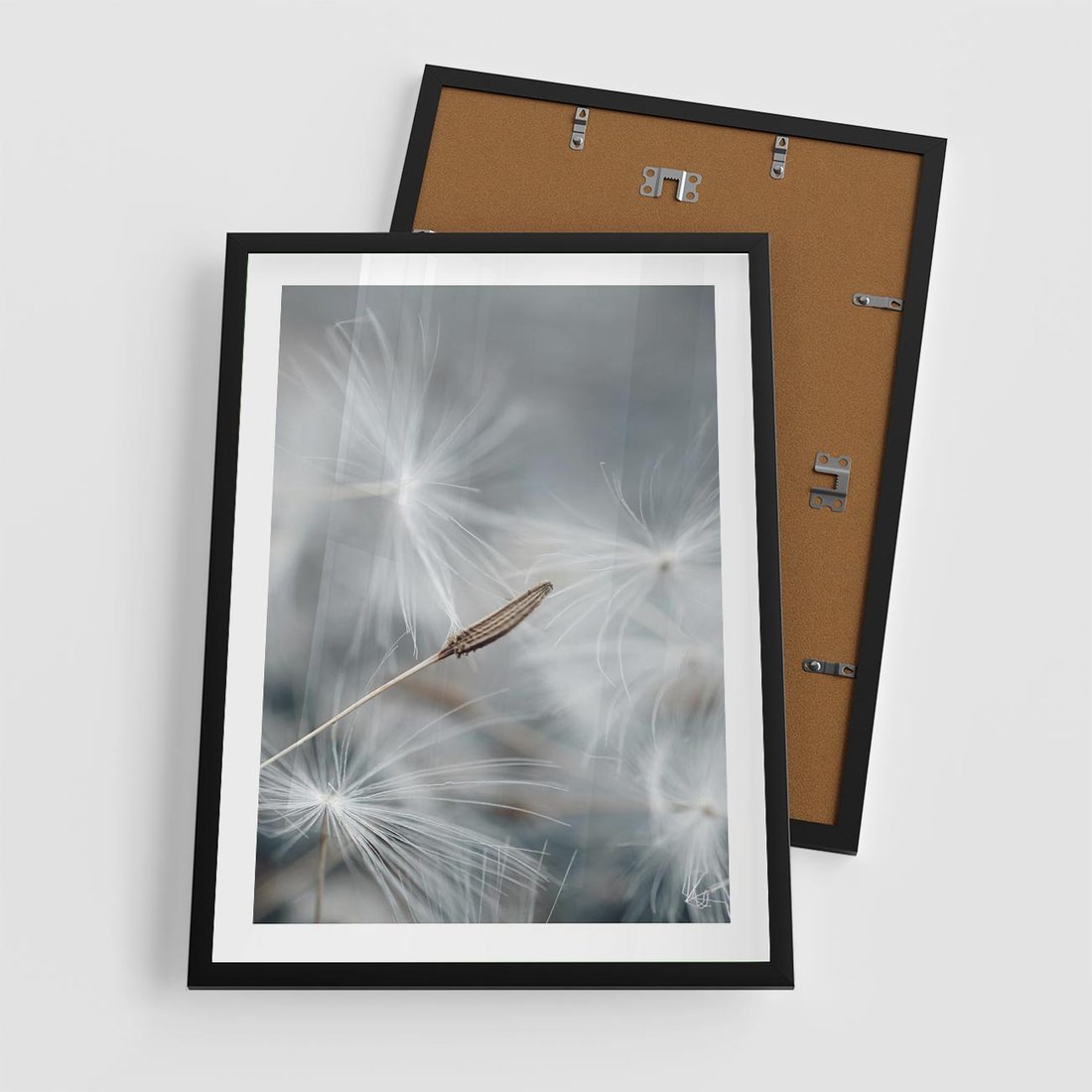 Plakat w ramie 50x70 - Piękno w Delikatności - dmuchawiec, makro zdjęcie - rama czarna
