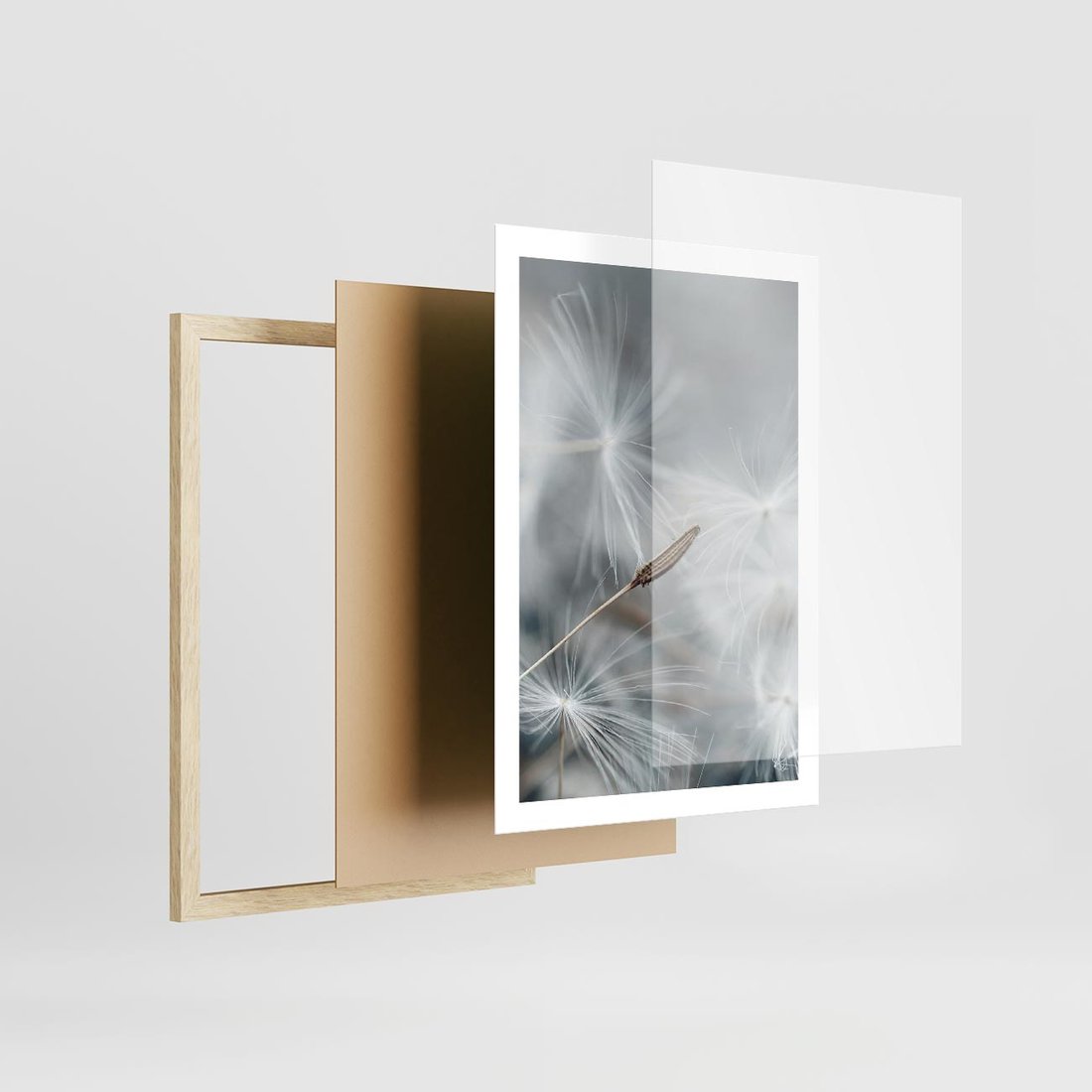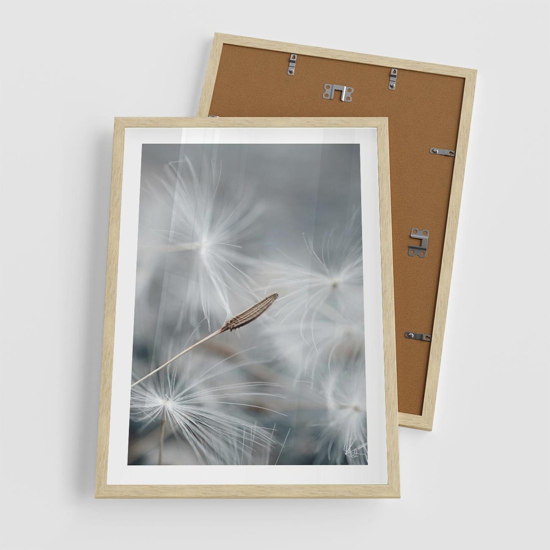 Plakat w ramie 50x70 - Piękno w Delikatności - dmuchawiec, makro zdjęcie - rama drewno