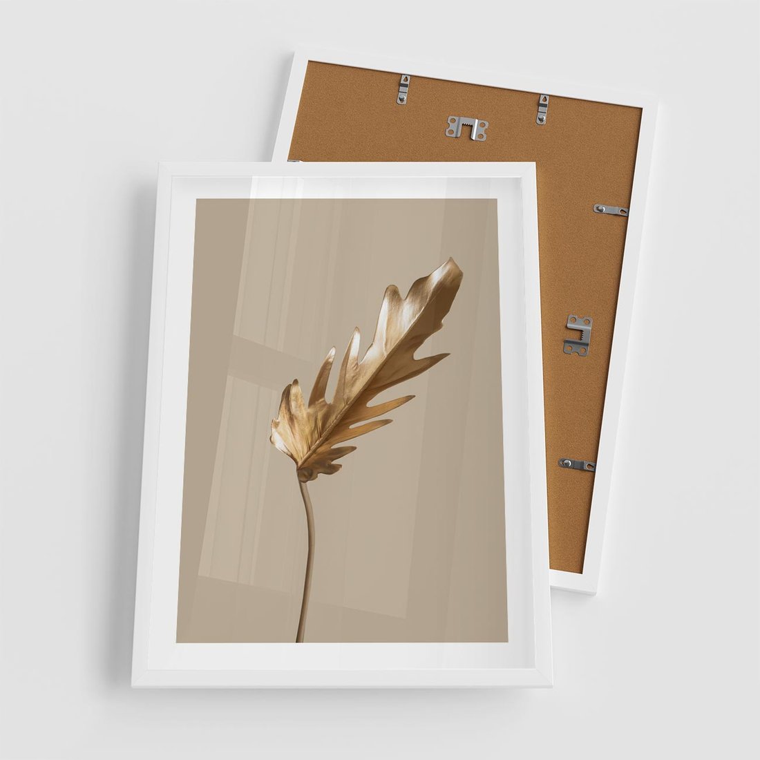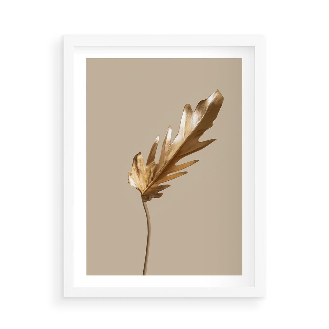 Plakat w ramie 50x70 - Piękno w Detalu - złoty, liść - rama biała