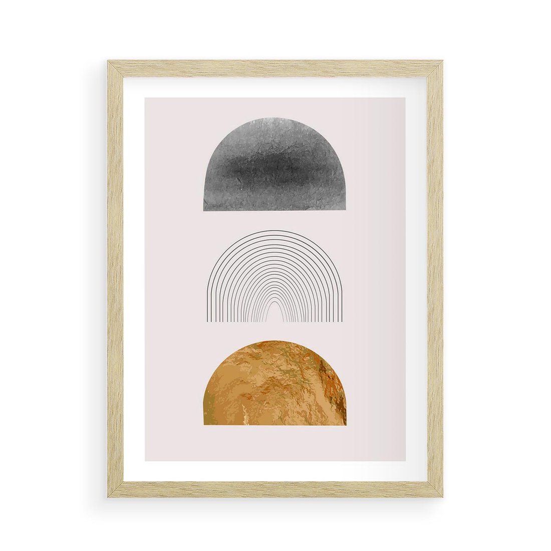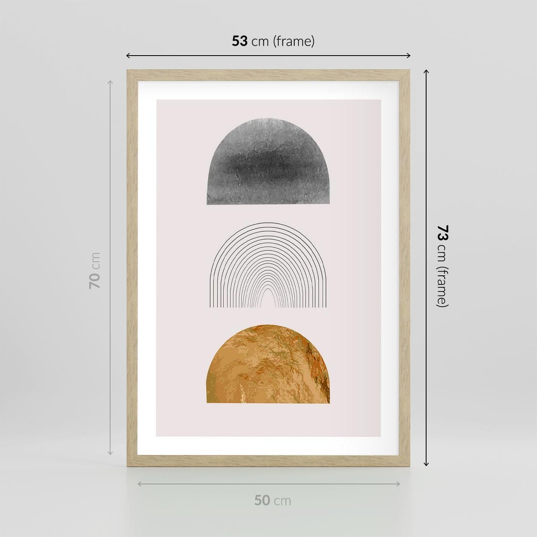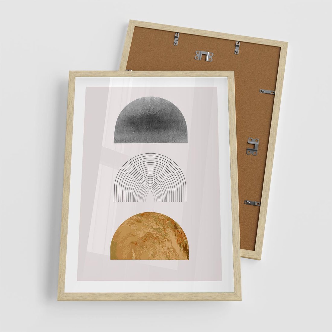 Plakat w ramie 50x70 - Piękno wGeometrycznych Kształtach i Złocie - nowoczesna geometryczna grafika, złote elementy - rama drewno