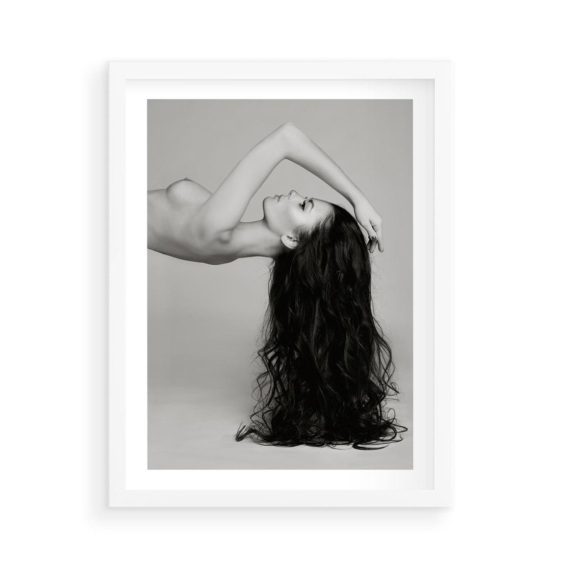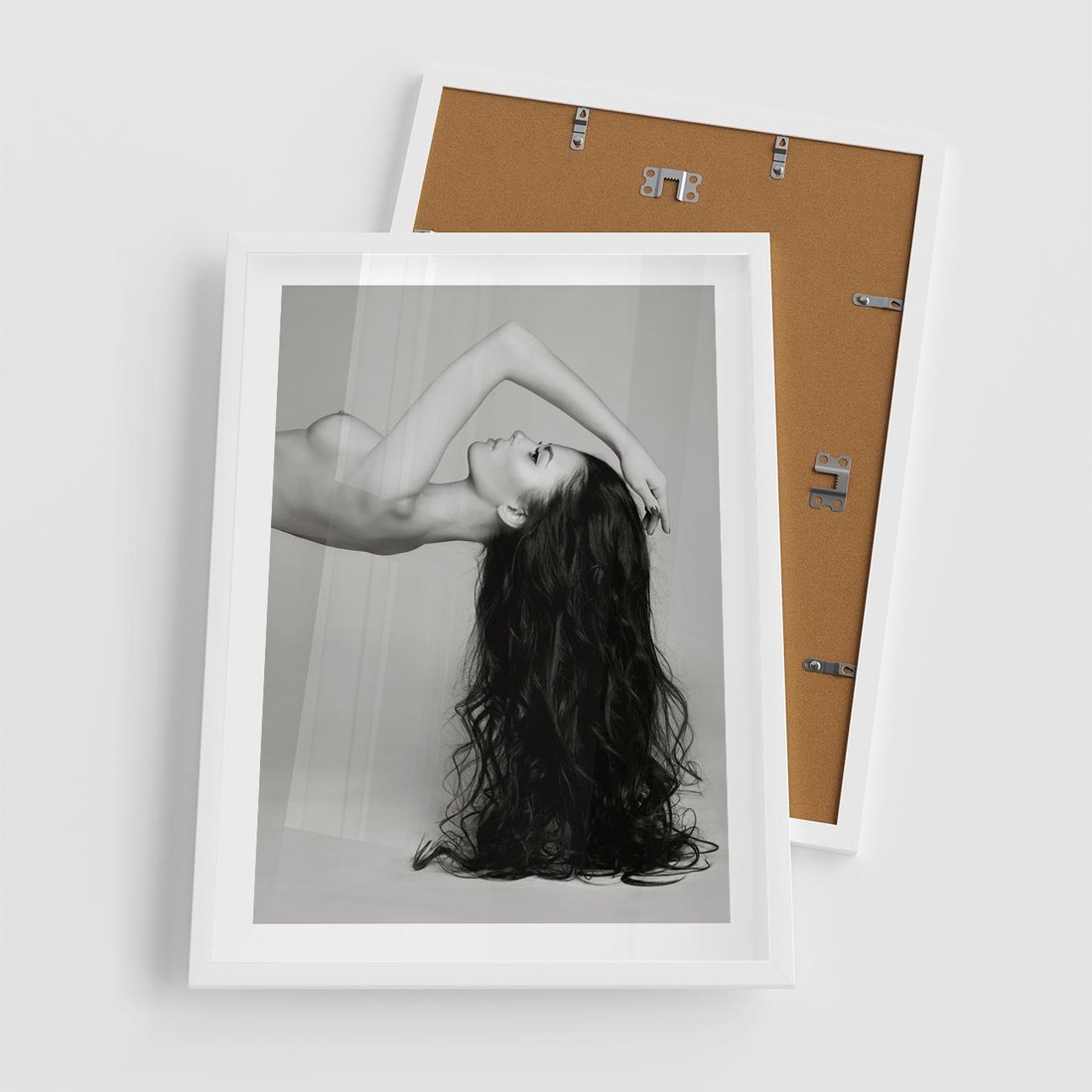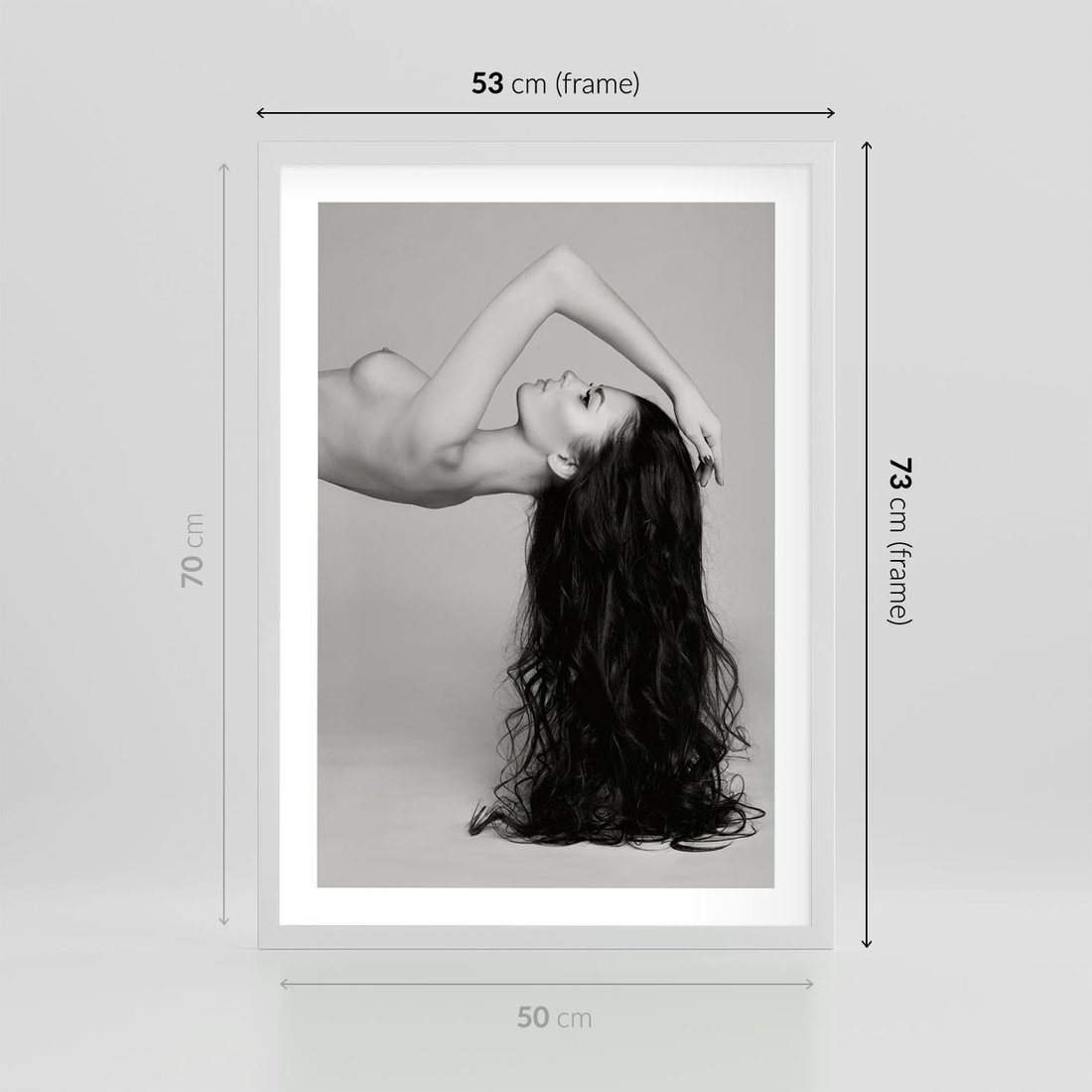 Plakat w ramie 50x70 - Piękno włosów kobiety w ruchu - włosy, piękno - rama biała