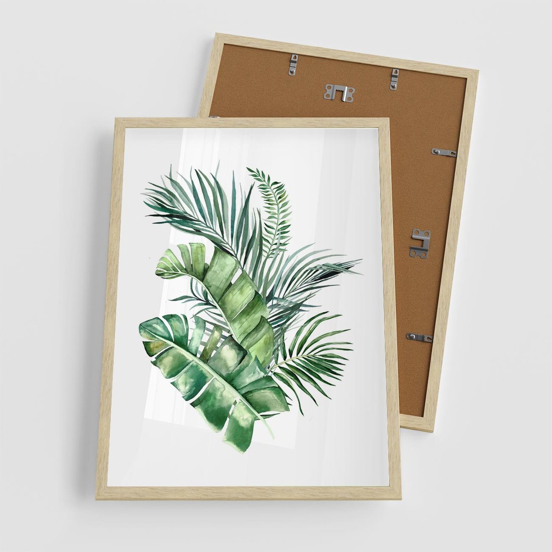 Plakat w ramie 50x70 - Piękno Złotej Rośliny - złote, liście - rama drewno