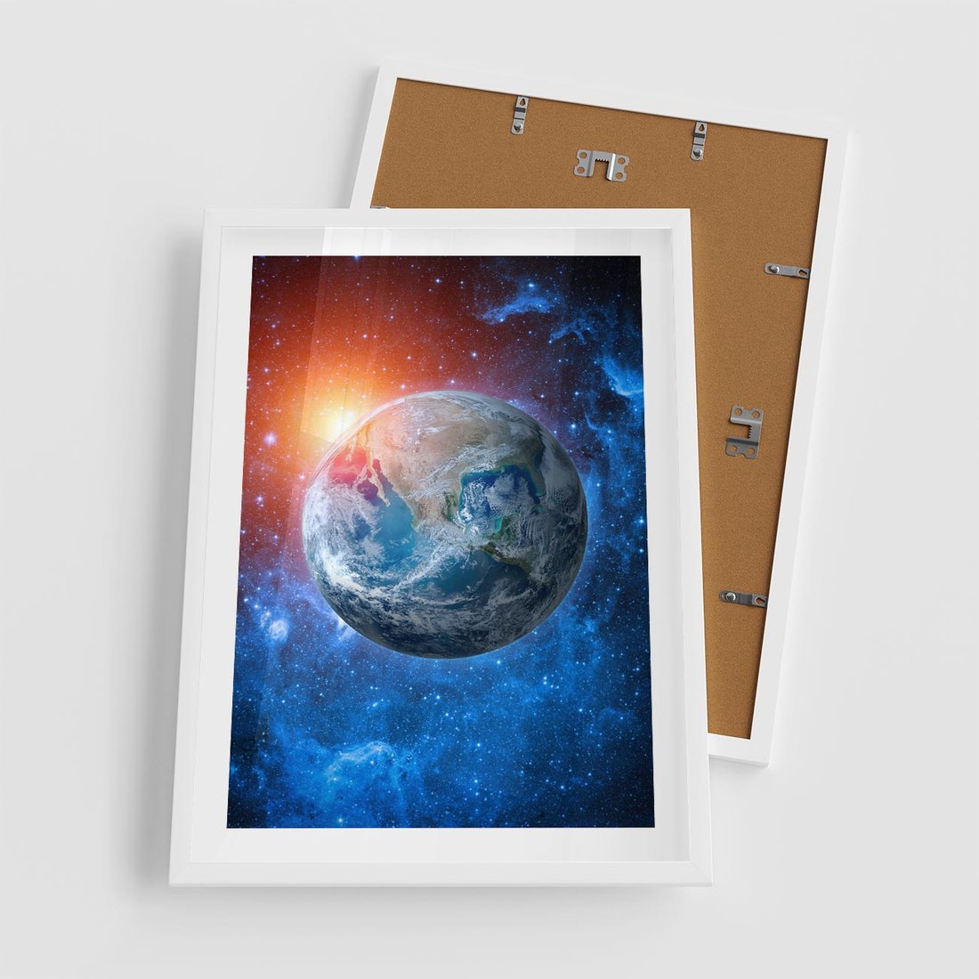 Plakat w ramie 50x70 - Planeta w nieskończoności - ziemia, kosmos - rama biała