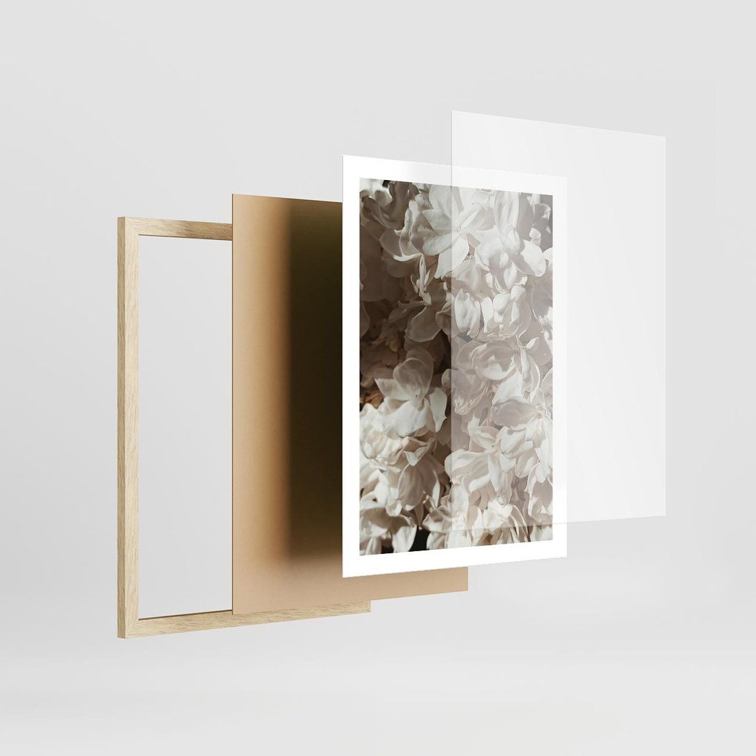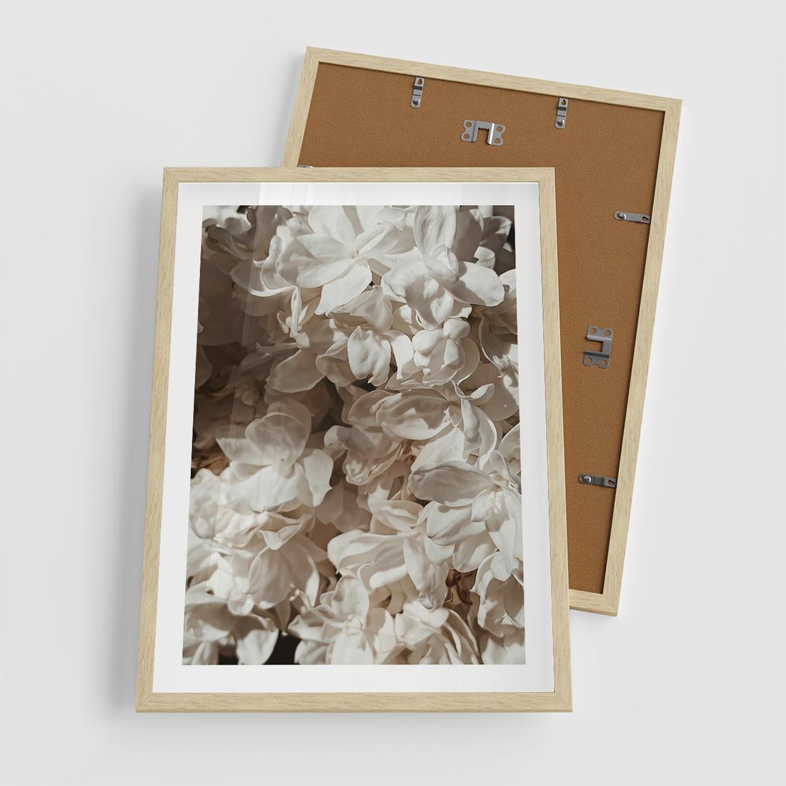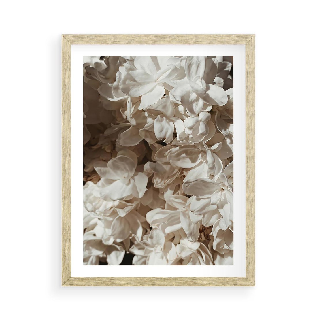 Plakat w ramie 50x70 - Płatki w Detalu - białe kwiaty, zbliżenie - rama drewno