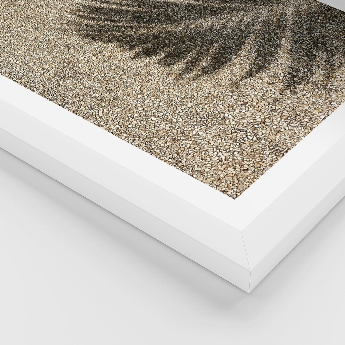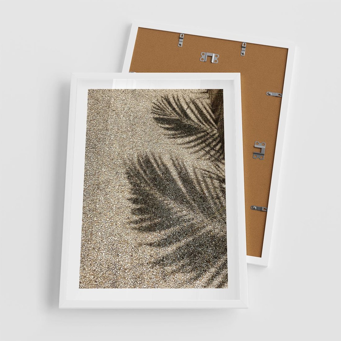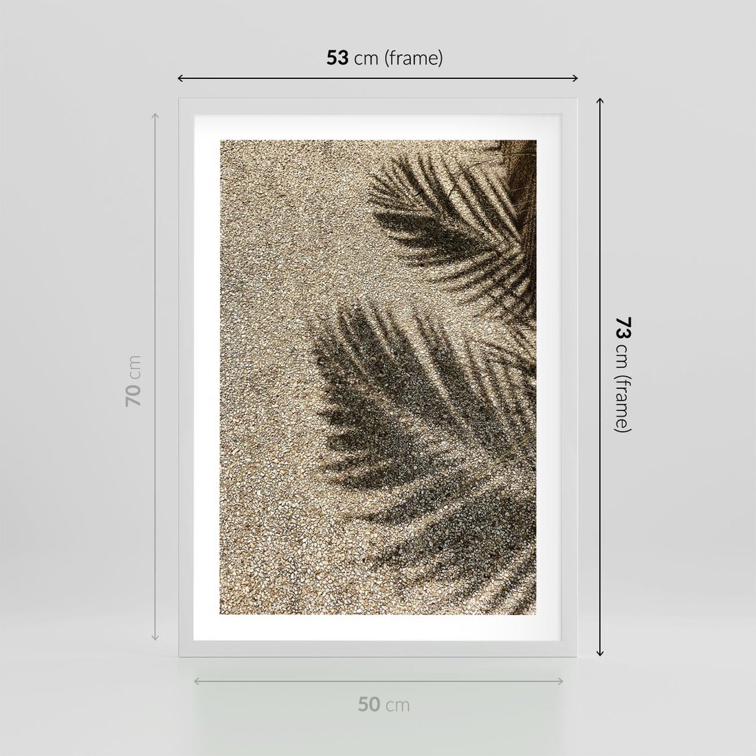 Plakat w ramie 50x70 - Plażowa Idylla - palma, cień na piasku - rama biała