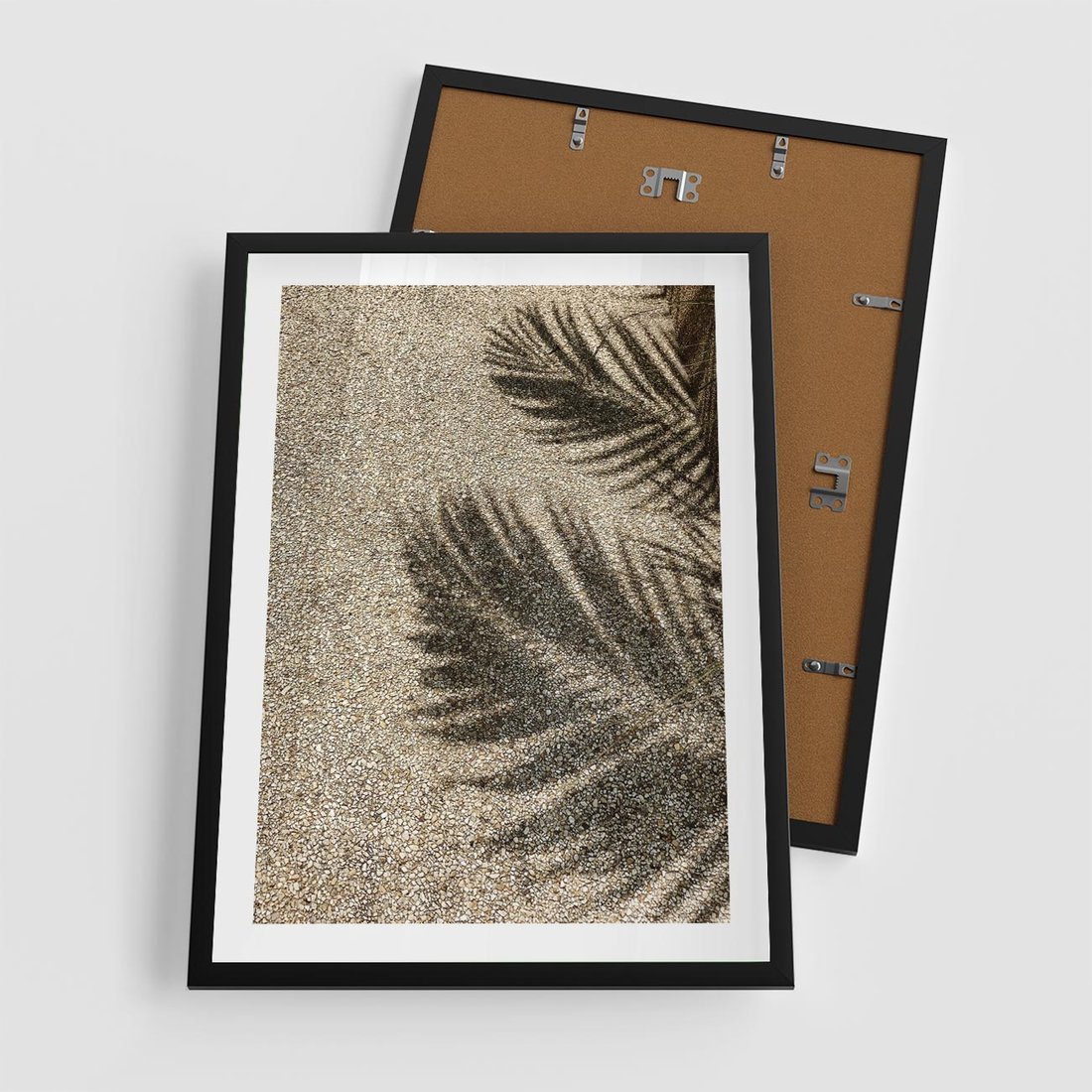 Plakat w ramie 50x70 - Plażowa Idylla - palma, cień na piasku - rama czarna
