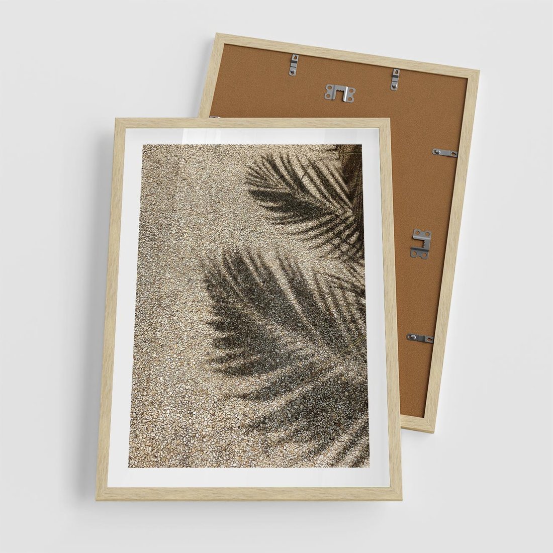 Plakat w ramie 50x70 - Plażowa Idylla - palma, cień na piasku - rama drewno