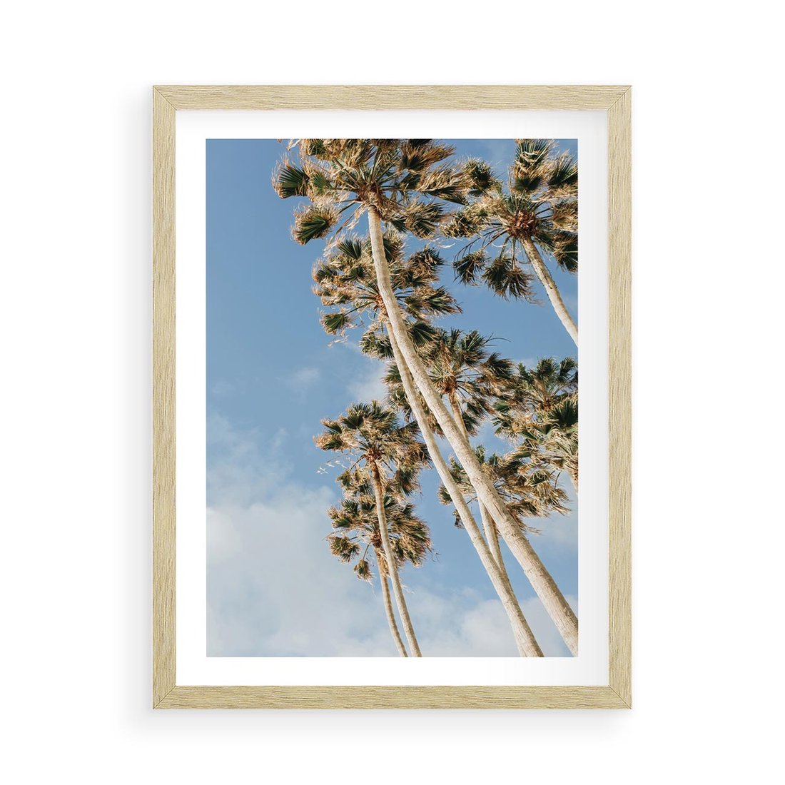 Plakat w ramie 50x70 - Pod Niebem Palmy - palmy na niebieskim niebie - rama drewno