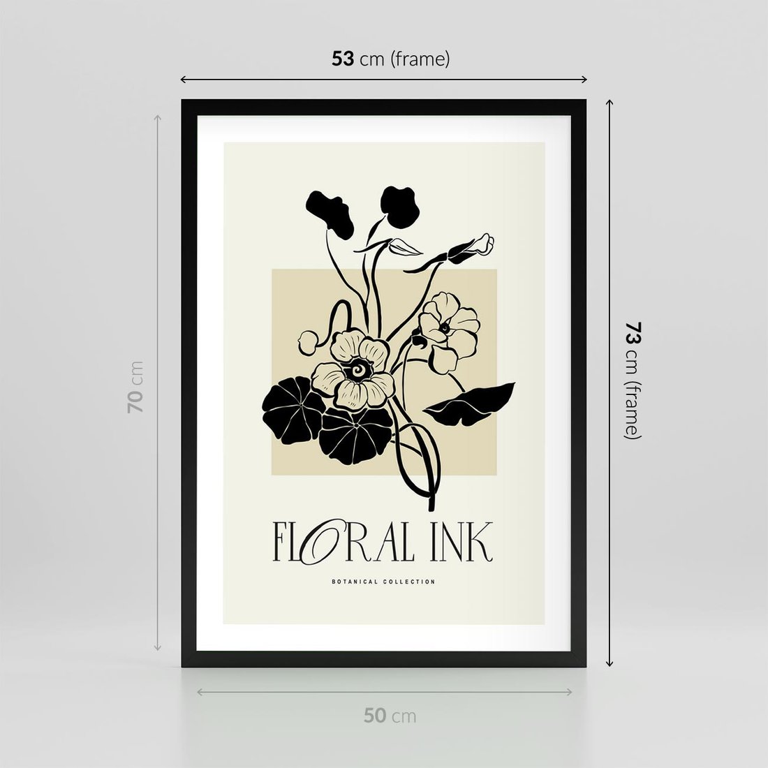 Plakat w ramie 50x70 - Podróż linii kwiatowego czasu - kwiaty, typografia - rama czarna