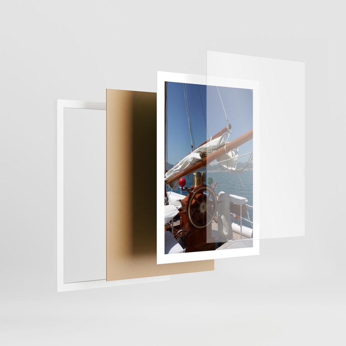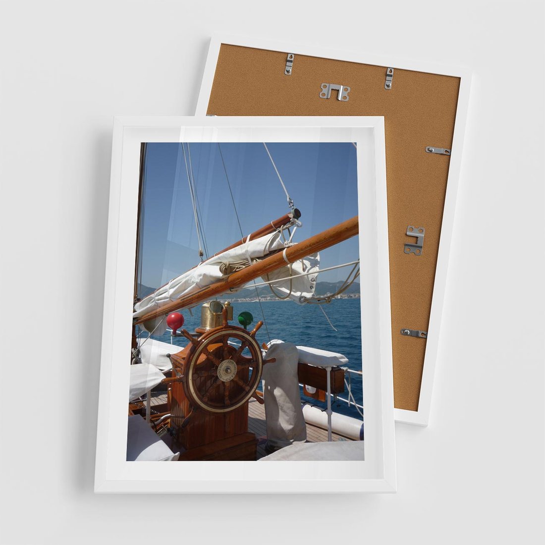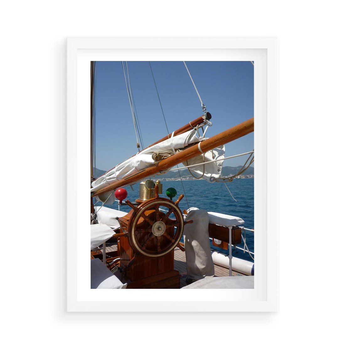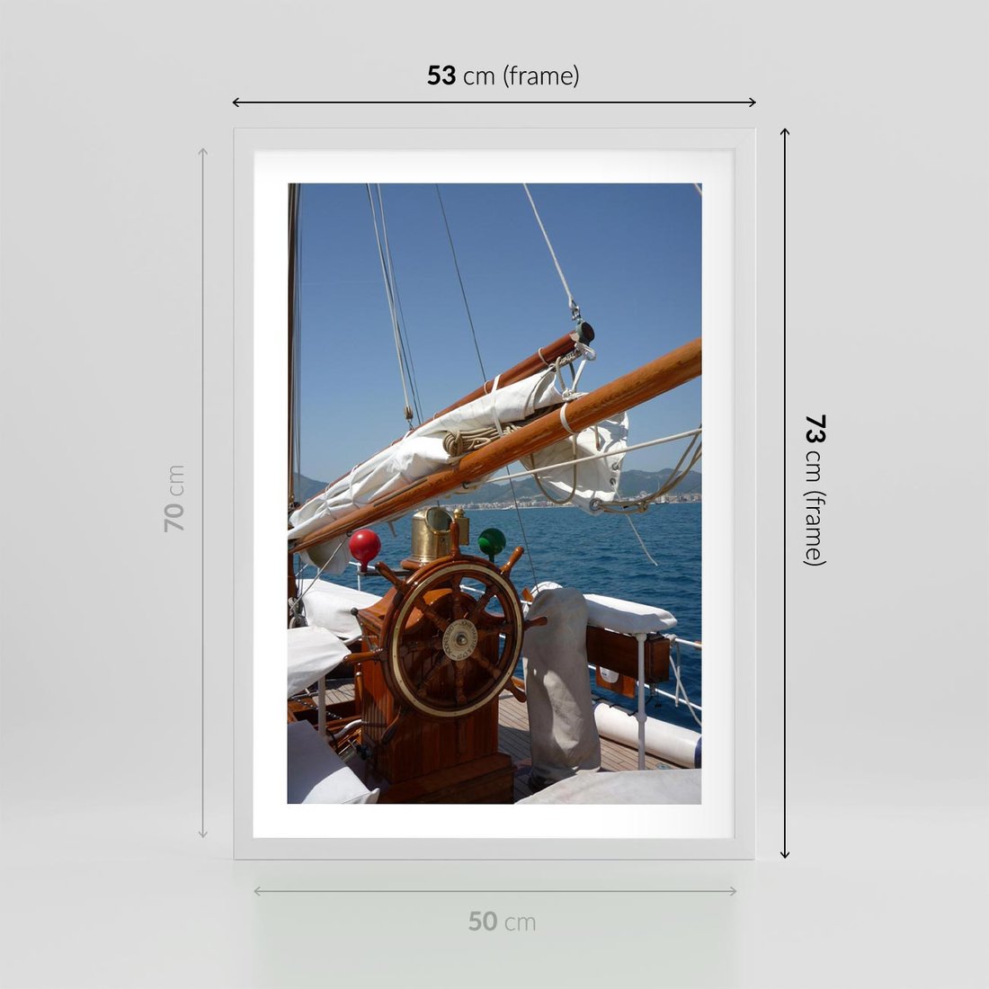 Plakat w ramie 50x70 - Podróż Morska - statek, ster - rama biała