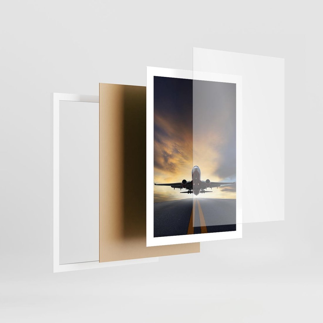 - Plakat w ramie 50x70 - Podróż samolotem w pejzaż