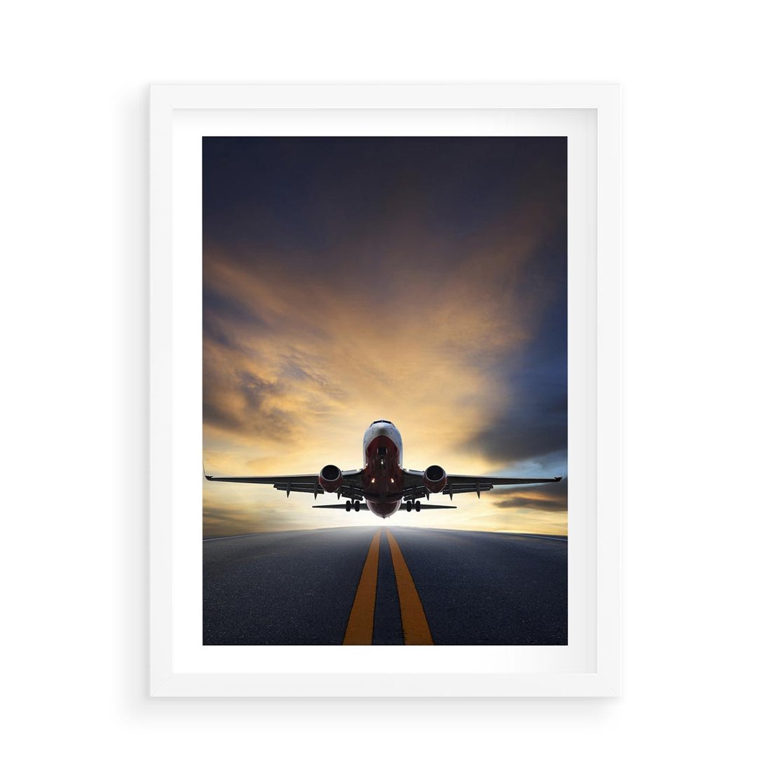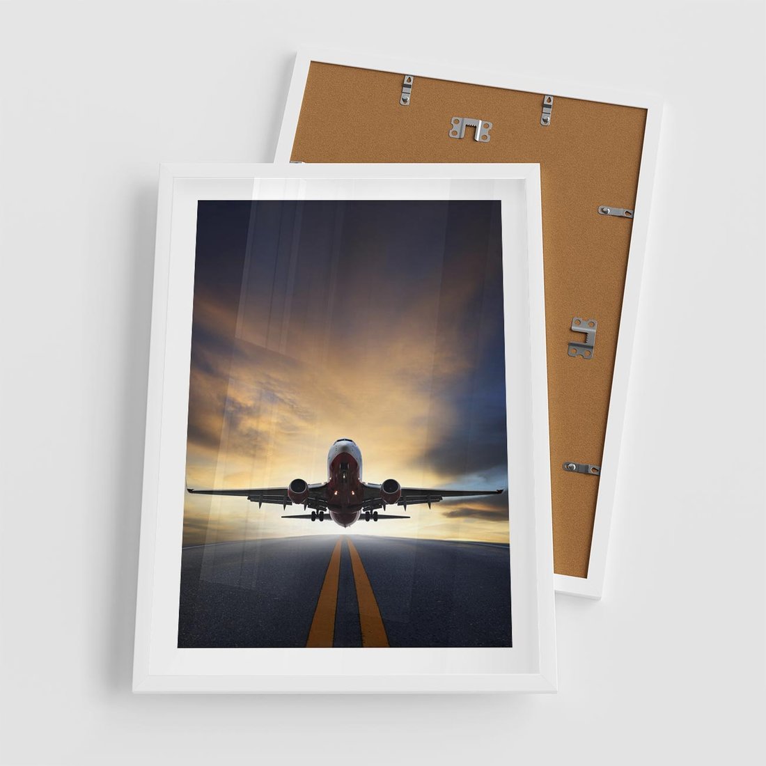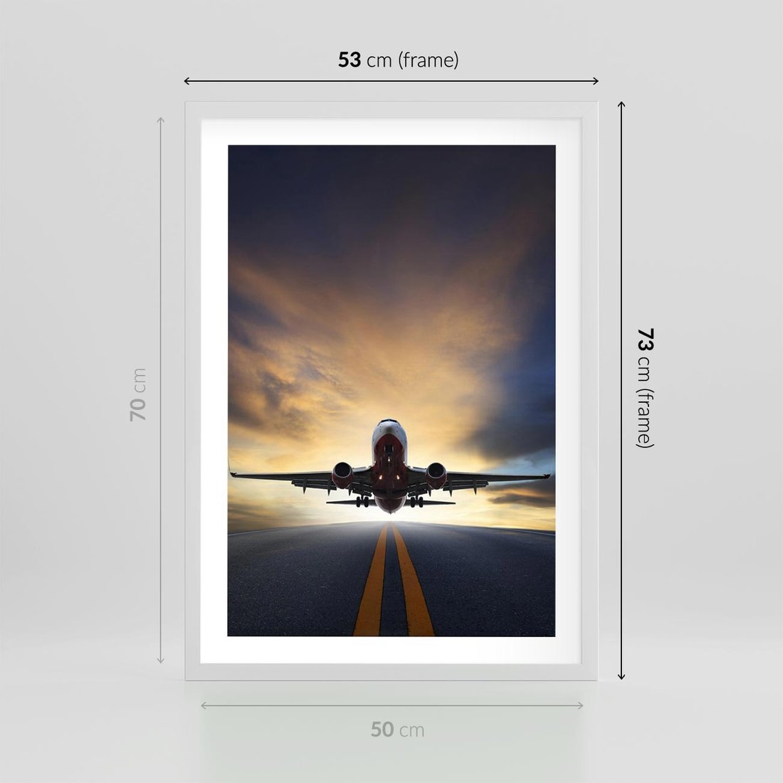 Plakat w ramie 50x70 - Podróż samolotem w pejzaż - samolot, podróż - rama biała