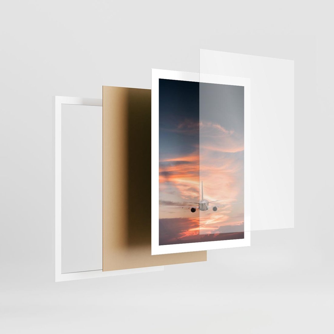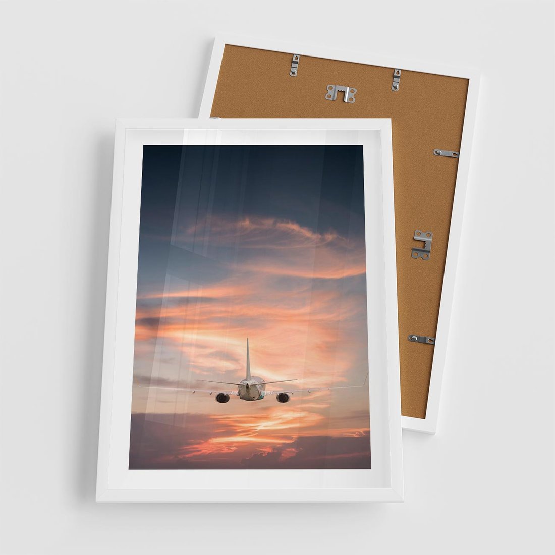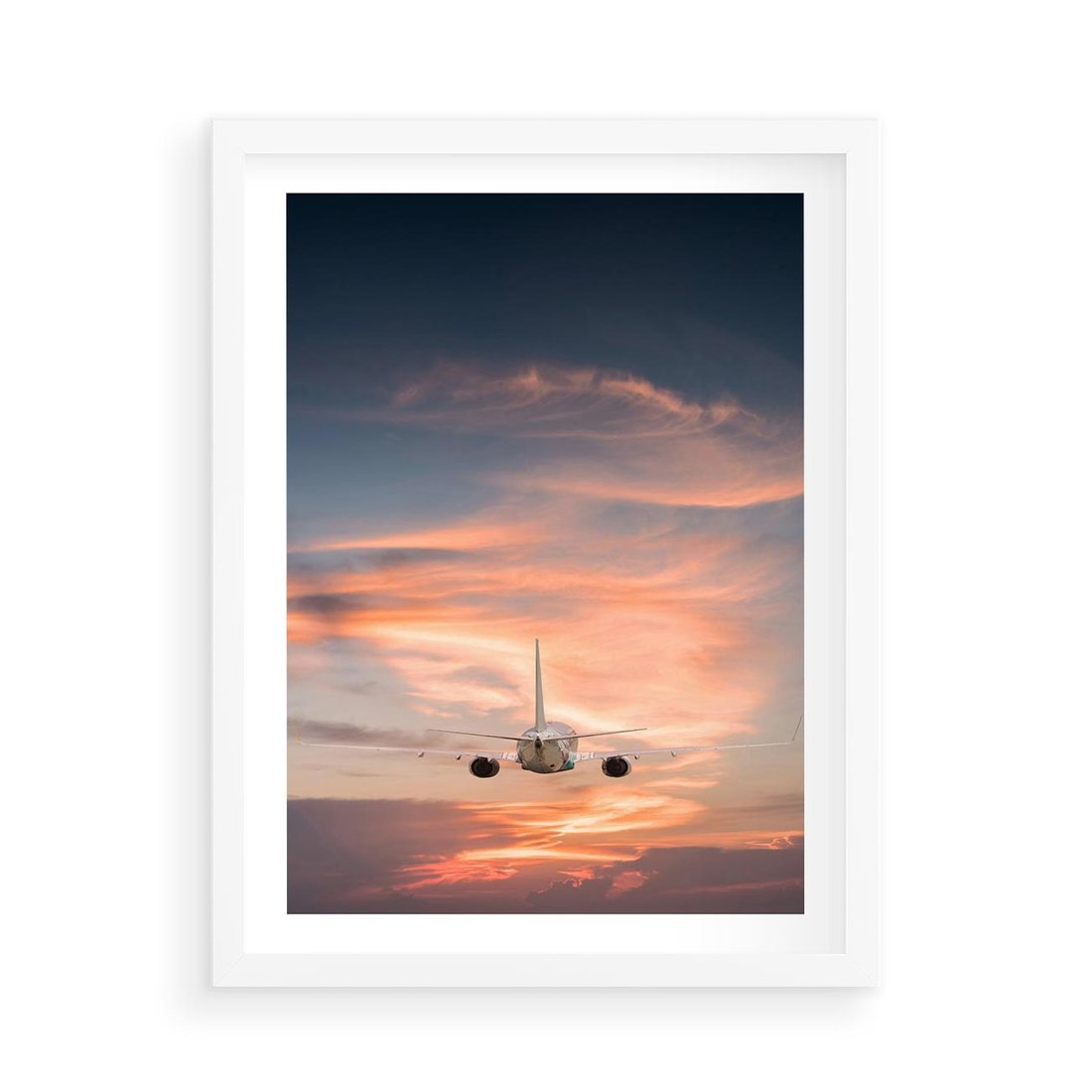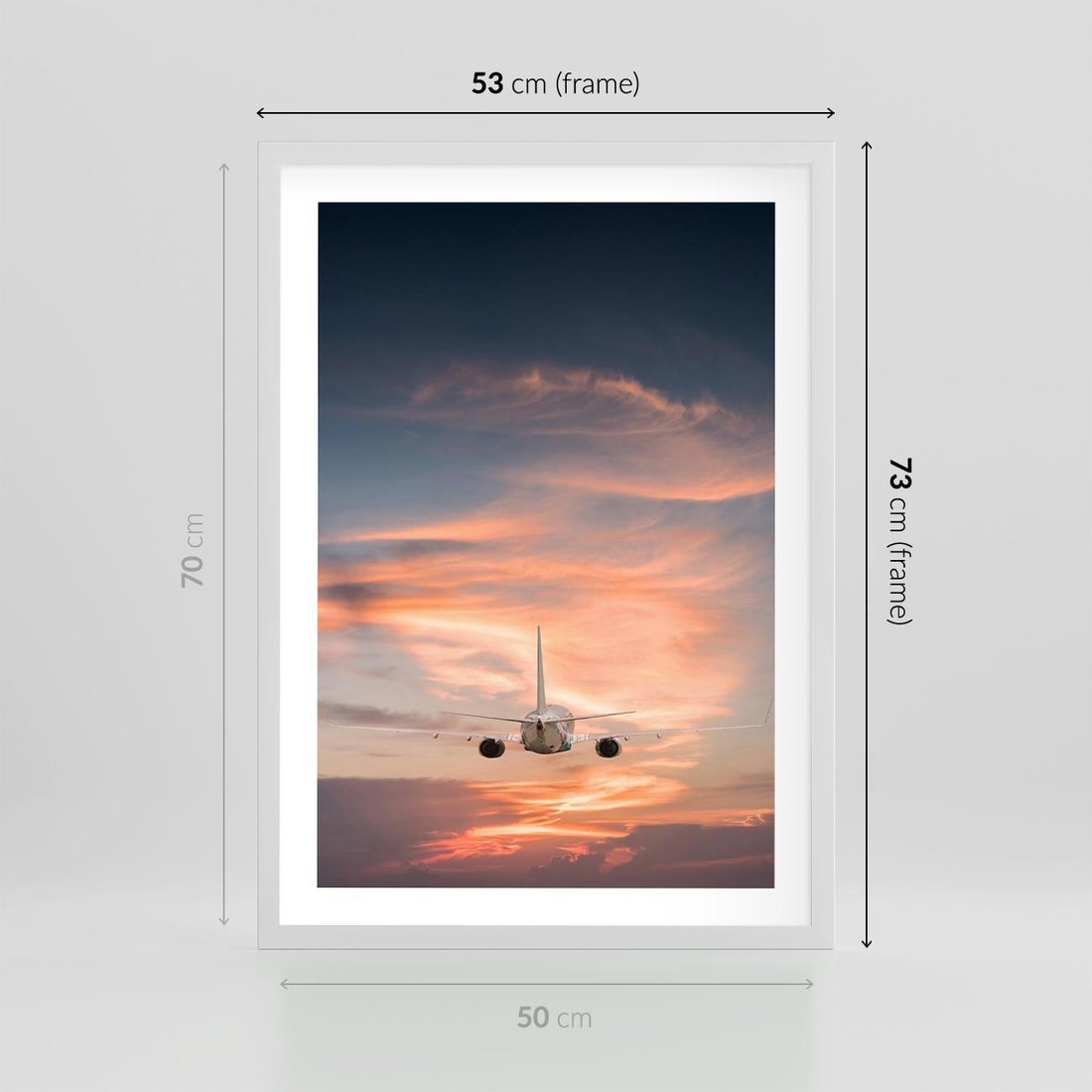 Plakat w ramie 50x70 - Podróż w Kierunku Słońca - samolot, samolot w powietrzu - rama biała