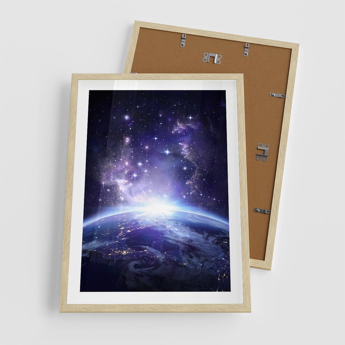 Plakat w ramie 50x70 - Podróż w kosmiczną przestrzeń - kosmos, ziemia - rama drewno