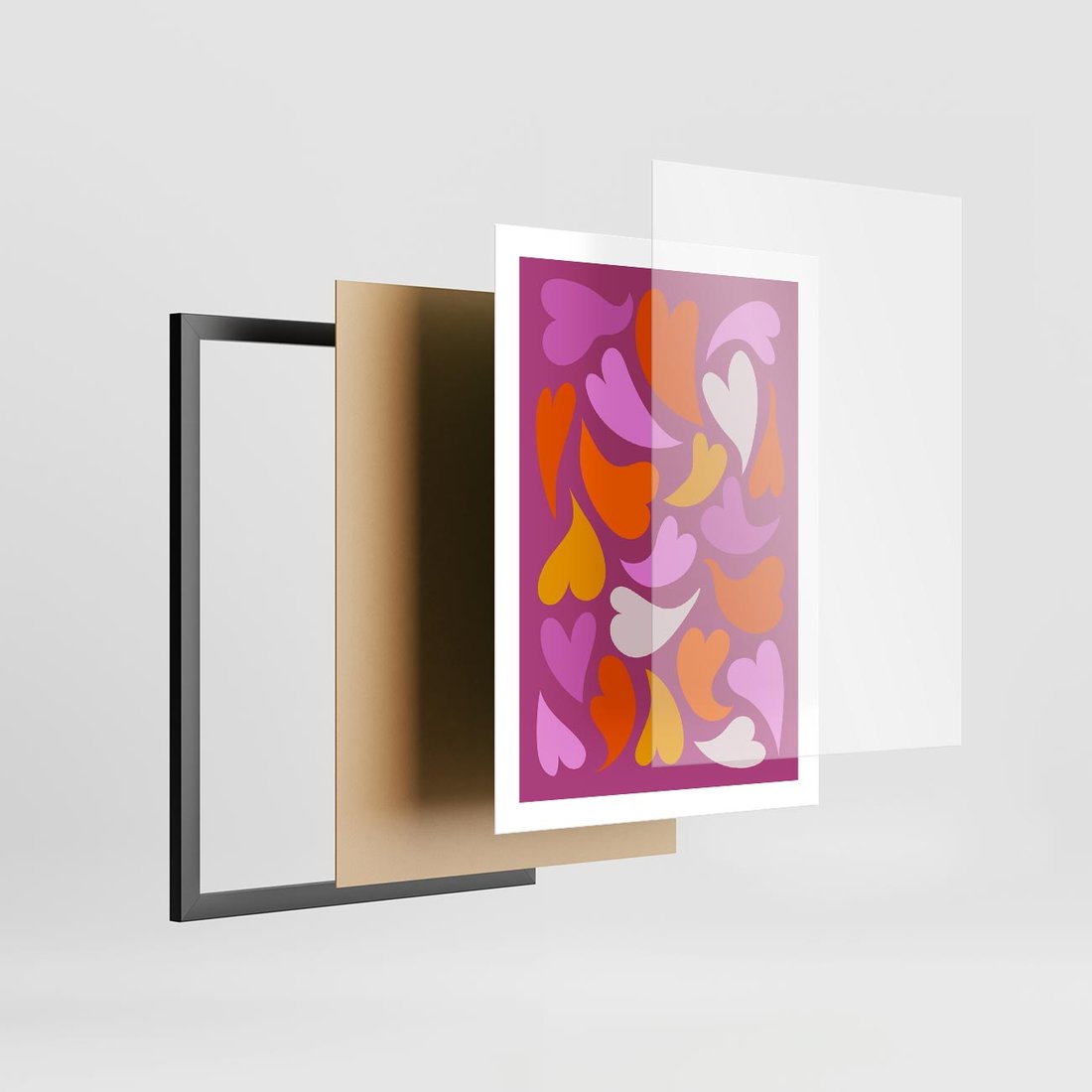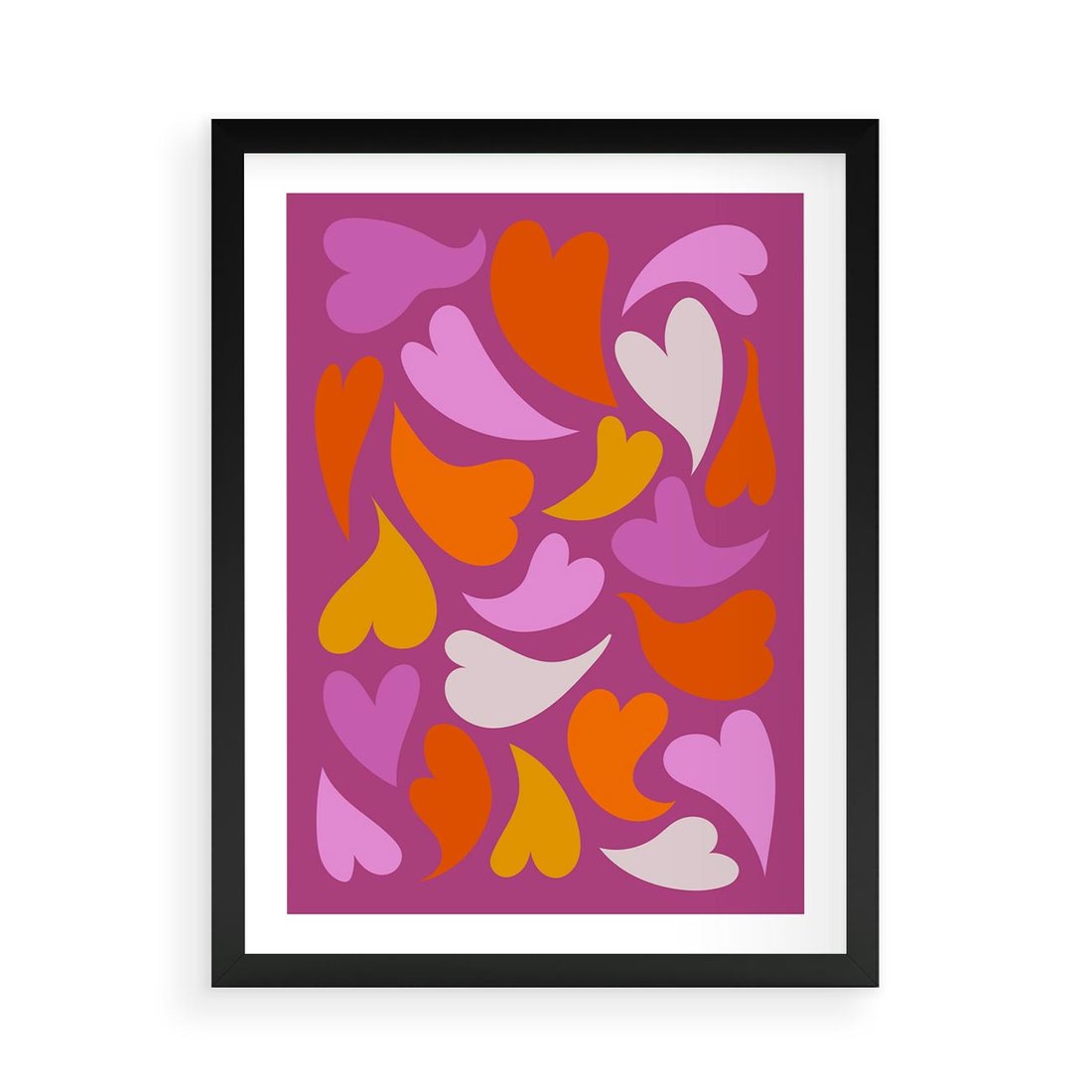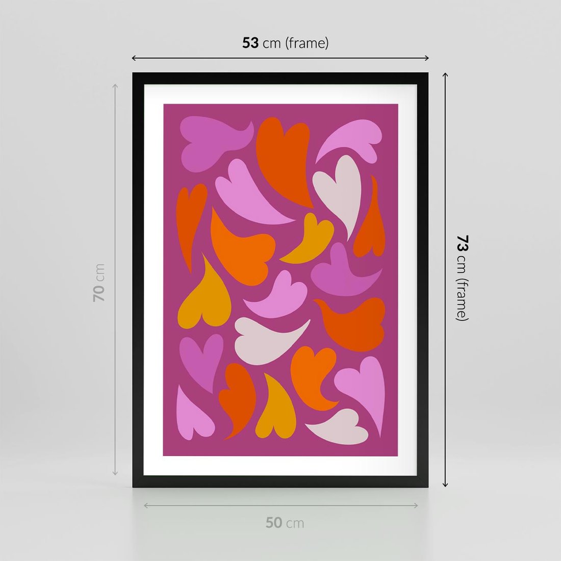 Ta wesoła grafika przenosi Cię z powrotem do lat 70., wypełniając przestrzeń energetycznymi kolorami i serduszkami. Styl lat 70. ożywa w tej kompozycji, tworząc atmosferę radości i pozytywnej energii. Plakat to hołd dla tej epoki, który wnosi uśmiech i witalność do Twojego otoczenia.