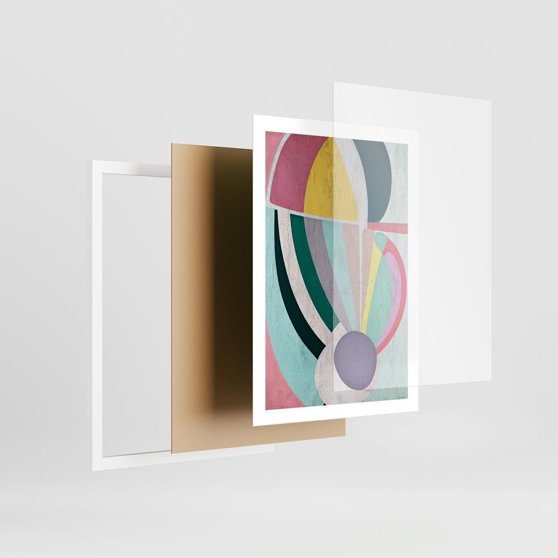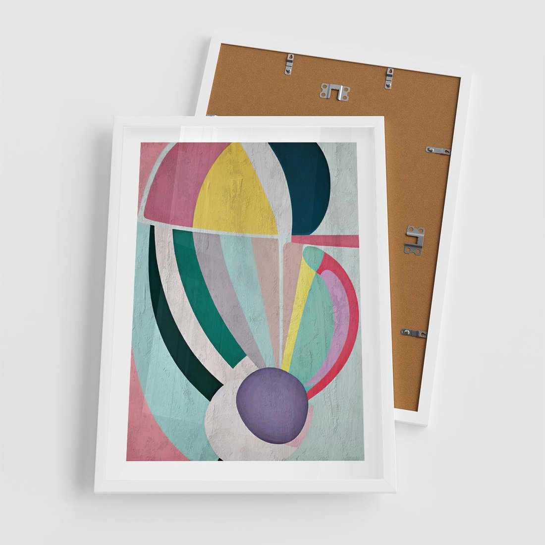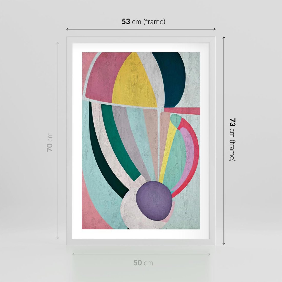 Plakat w ramie 50x70 - Podróżne Echa Przestrzeni - abstrakcyjne dziwne kształty, olejny obraz - rama biała