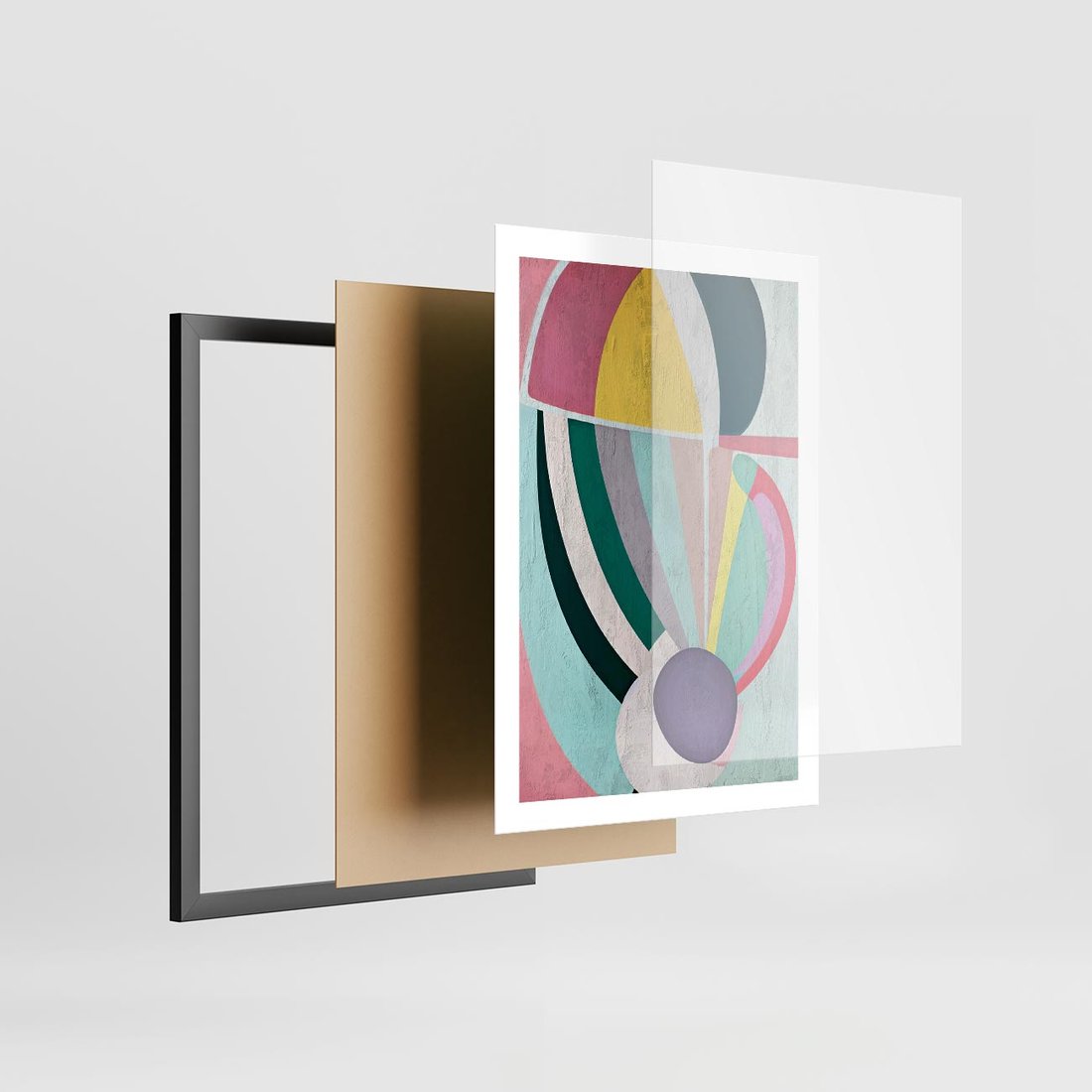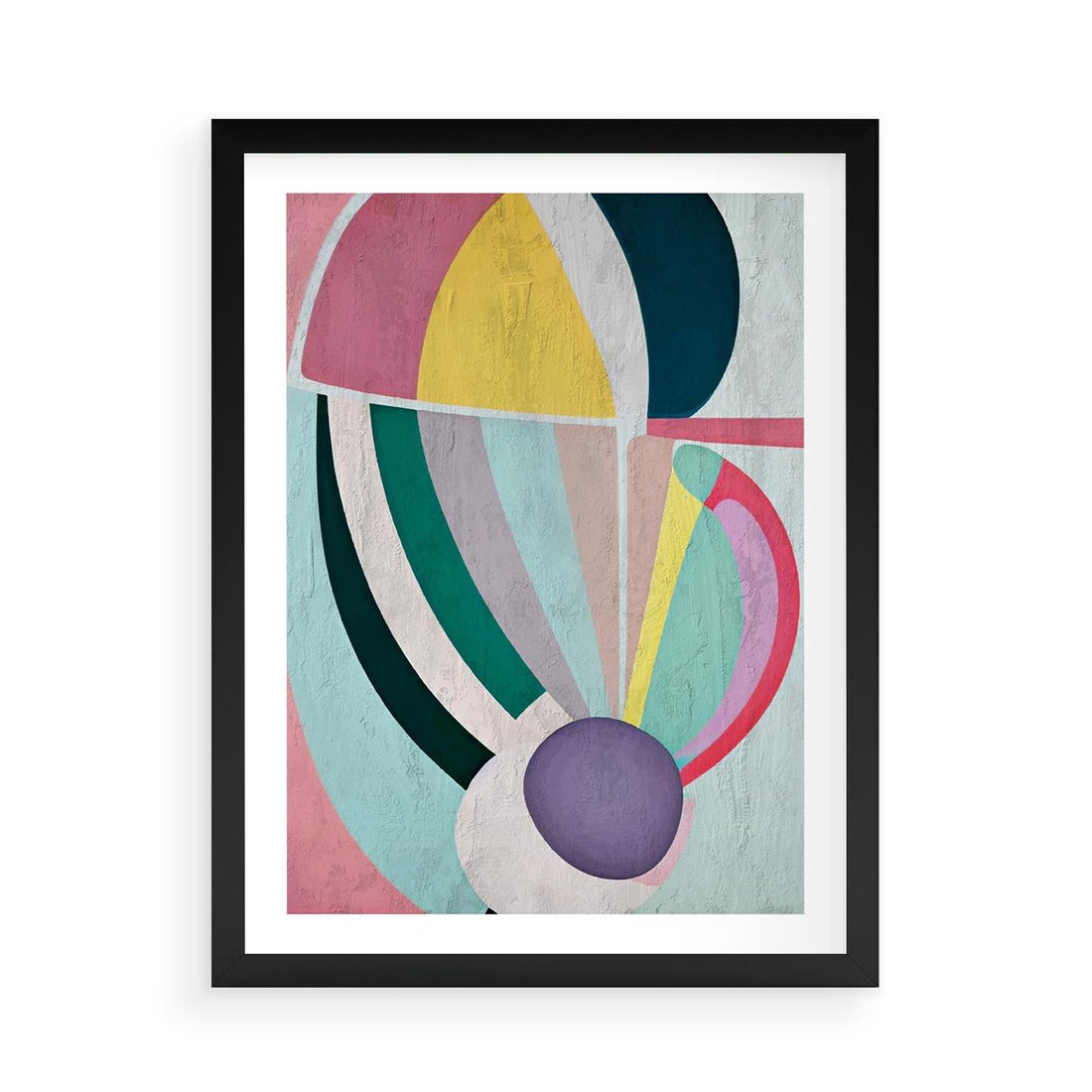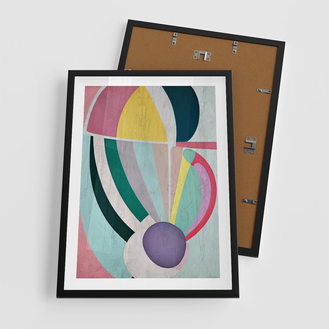 Plakat w ramie 50x70 - Podróżne Echa Przestrzeni - abstrakcyjne dziwne kształty, olejny obraz - rama czarna