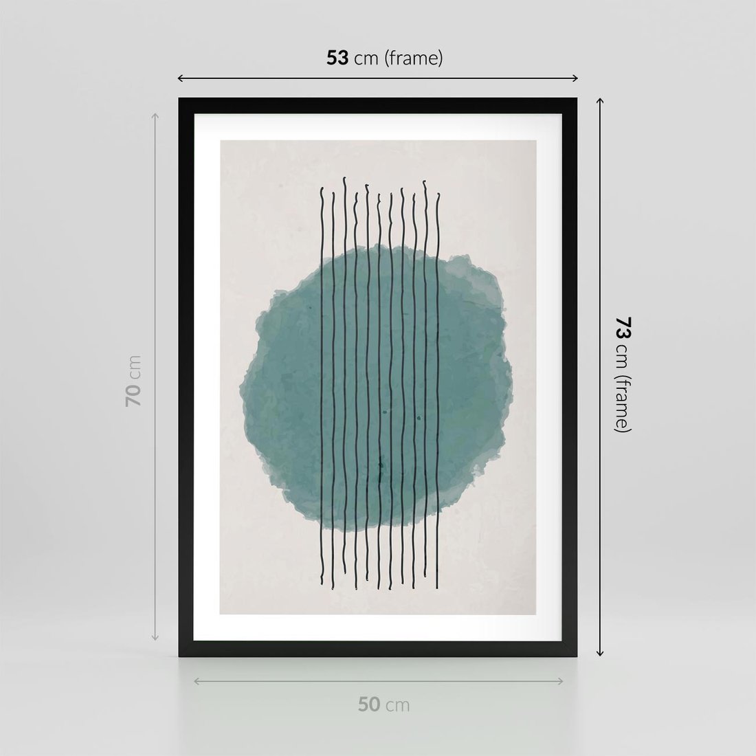 Plakat w ramie 50x70 - Podróżne Inspiracje - abstrakcyjna akwarelowa plama, nieregularne kreski - rama czarna