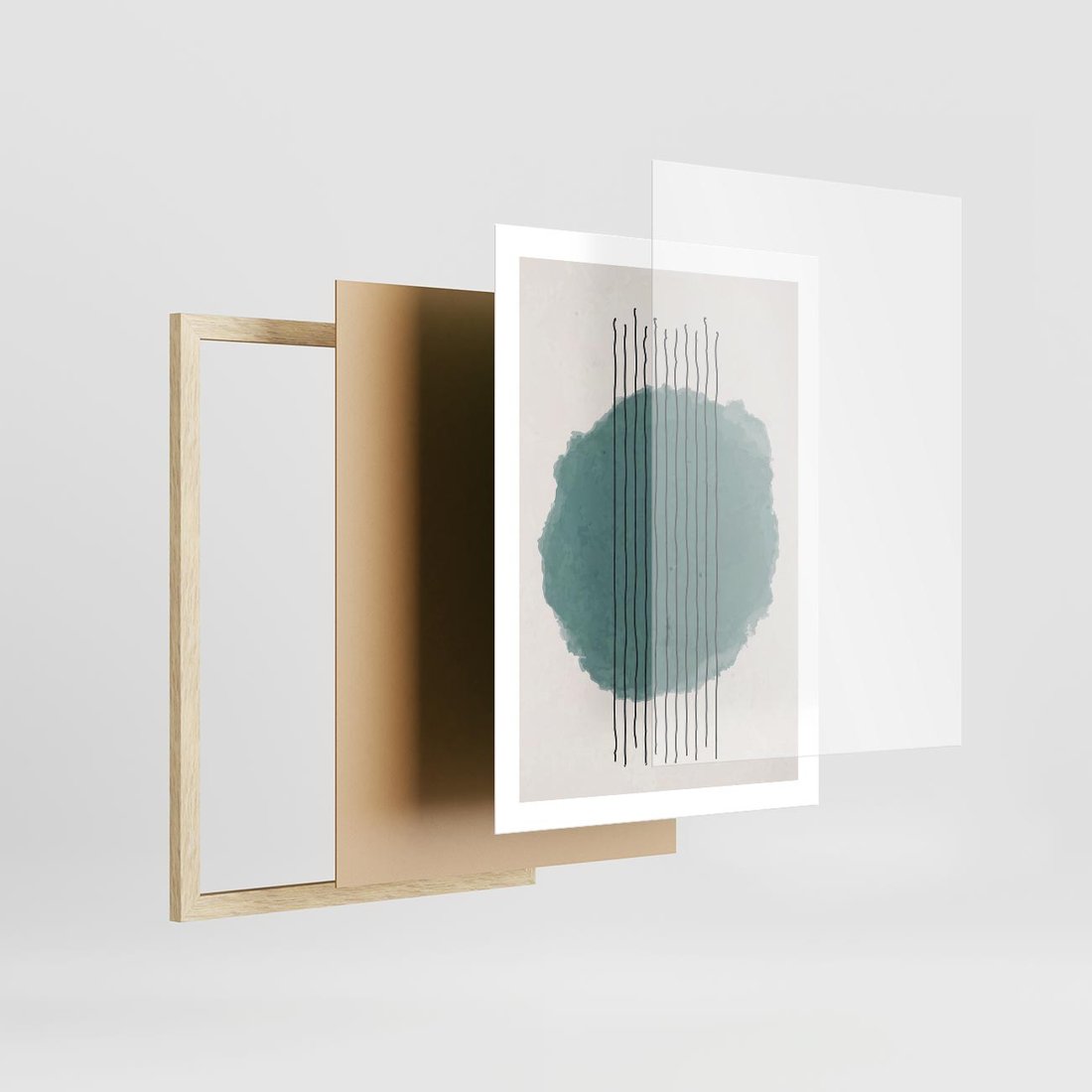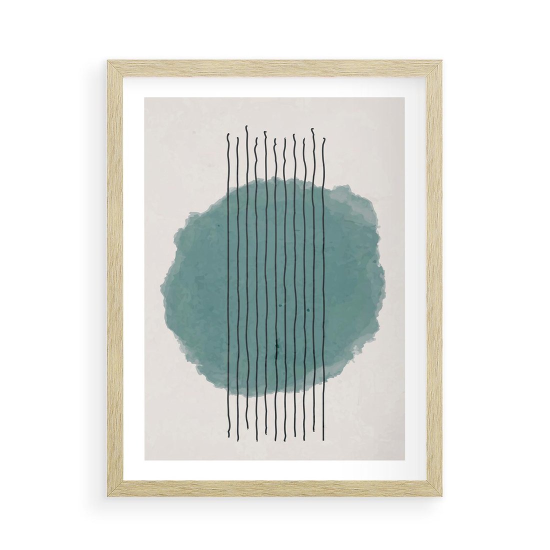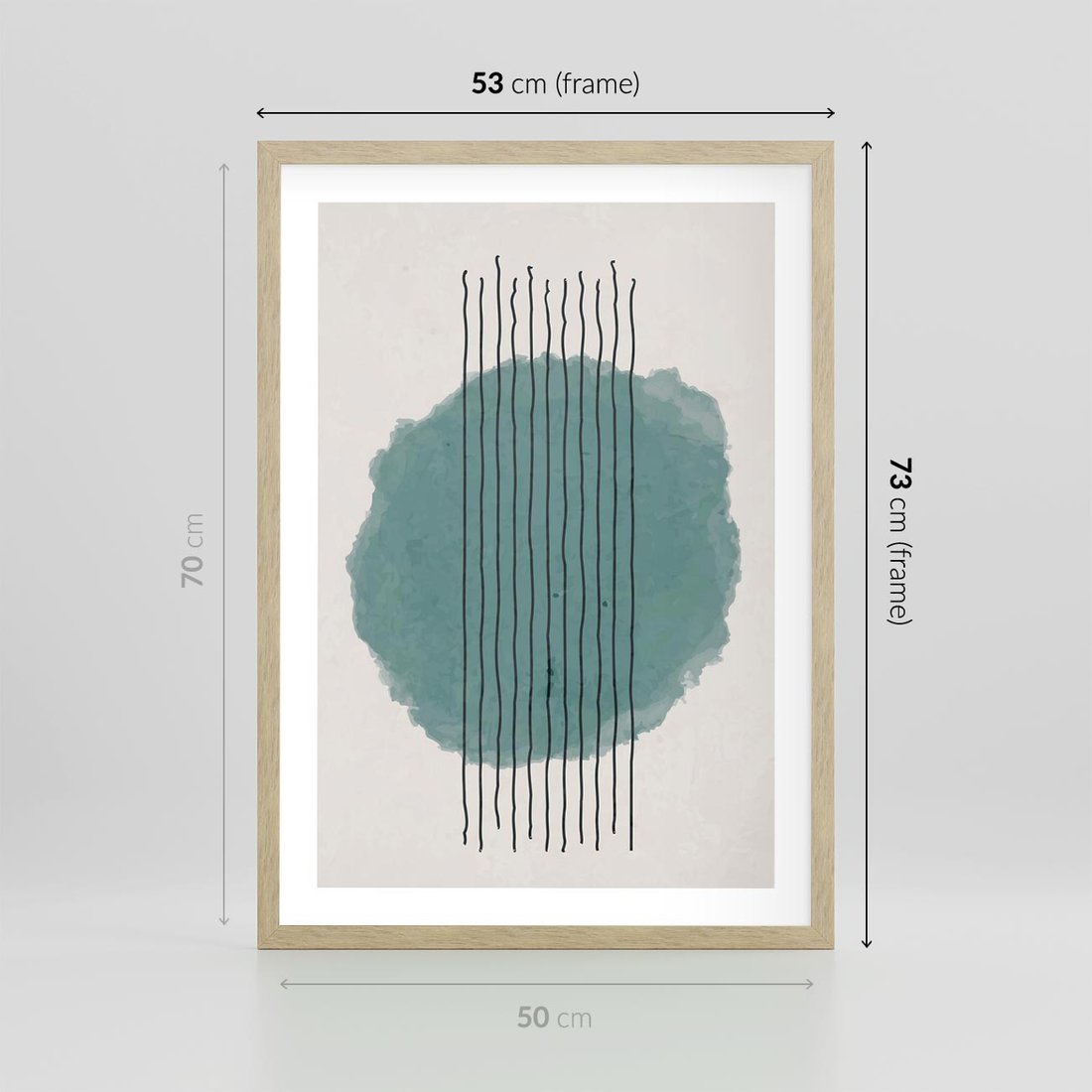 Plakat w ramie 50x70 - Podróżne Inspiracje - abstrakcyjna akwarelowa plama, nieregularne kreski - rama drewno