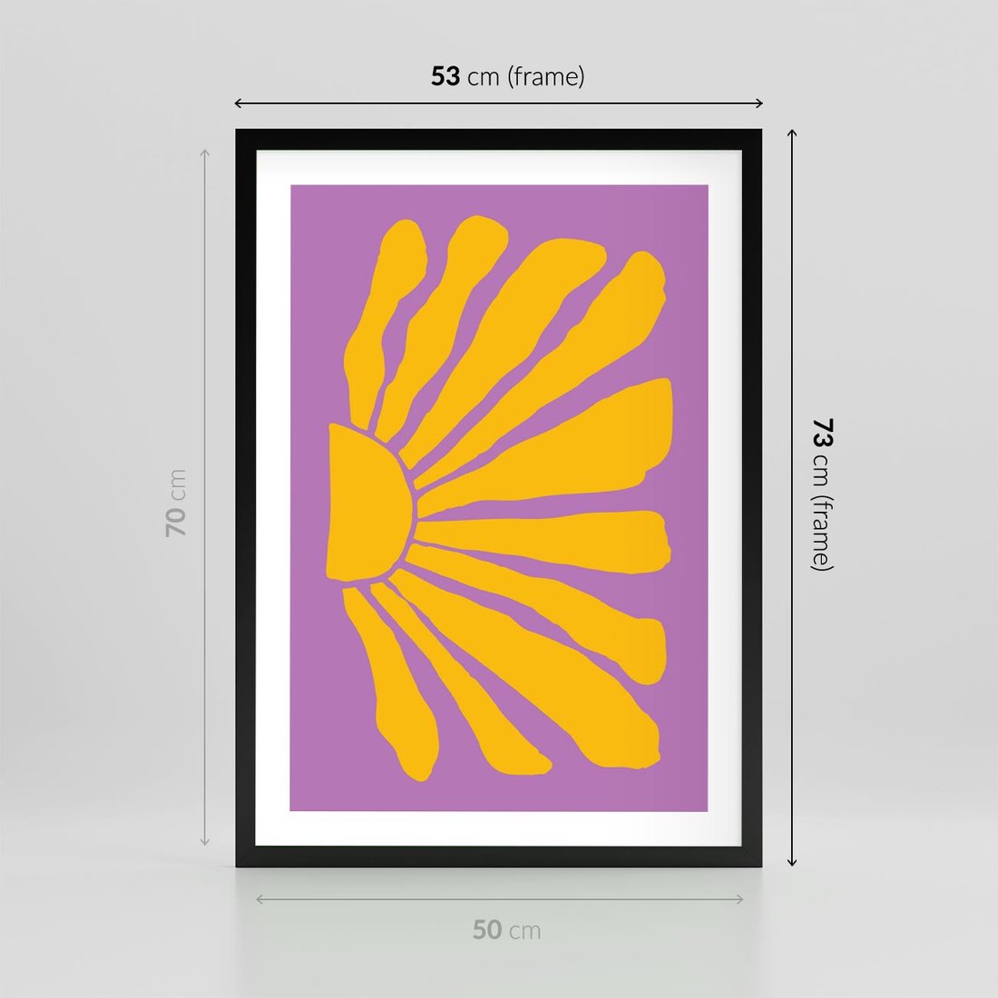 Ten abstrakcyjny plakat ukazuje żółte słońce na tle intensywnego różowego koloru, tworząc efektowną kompozycję promieniującej energii. Sztuka ta dodaje dynamicznego akcentu do przestrzeni, przypominając o mocy i pięknie natury.