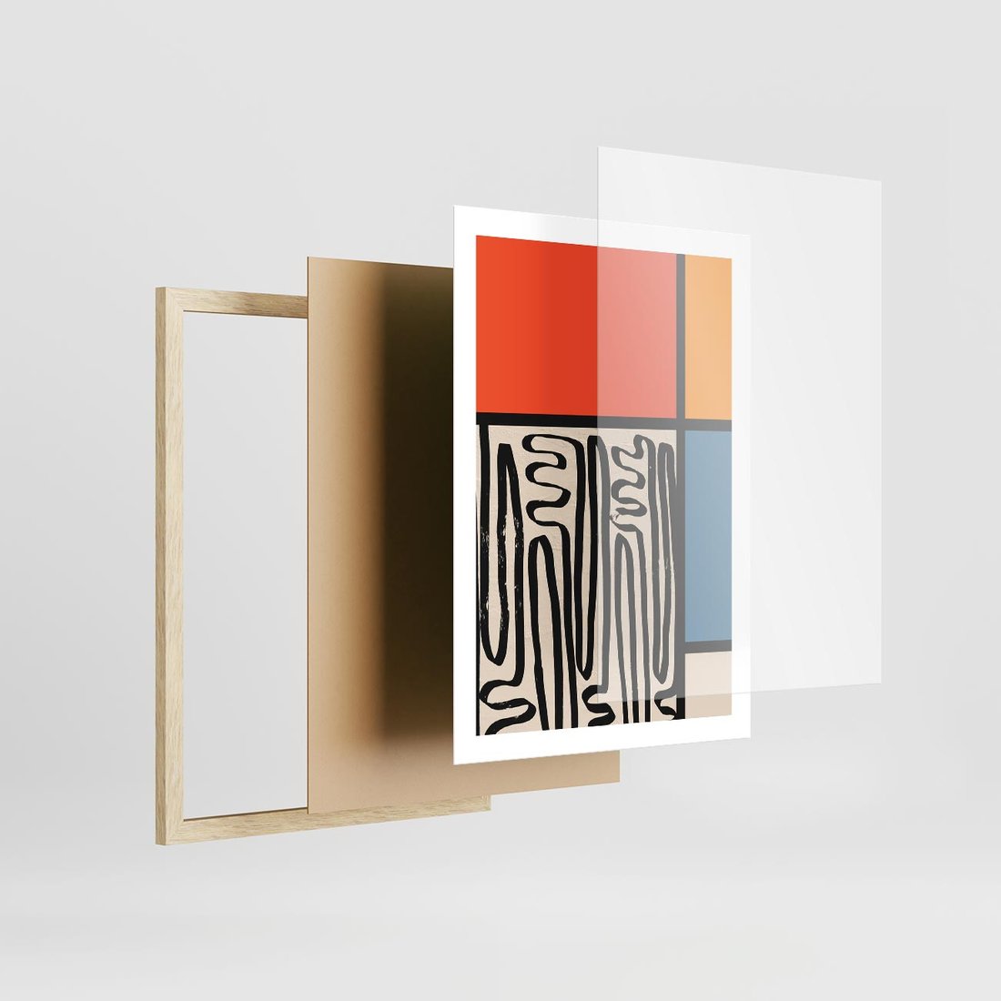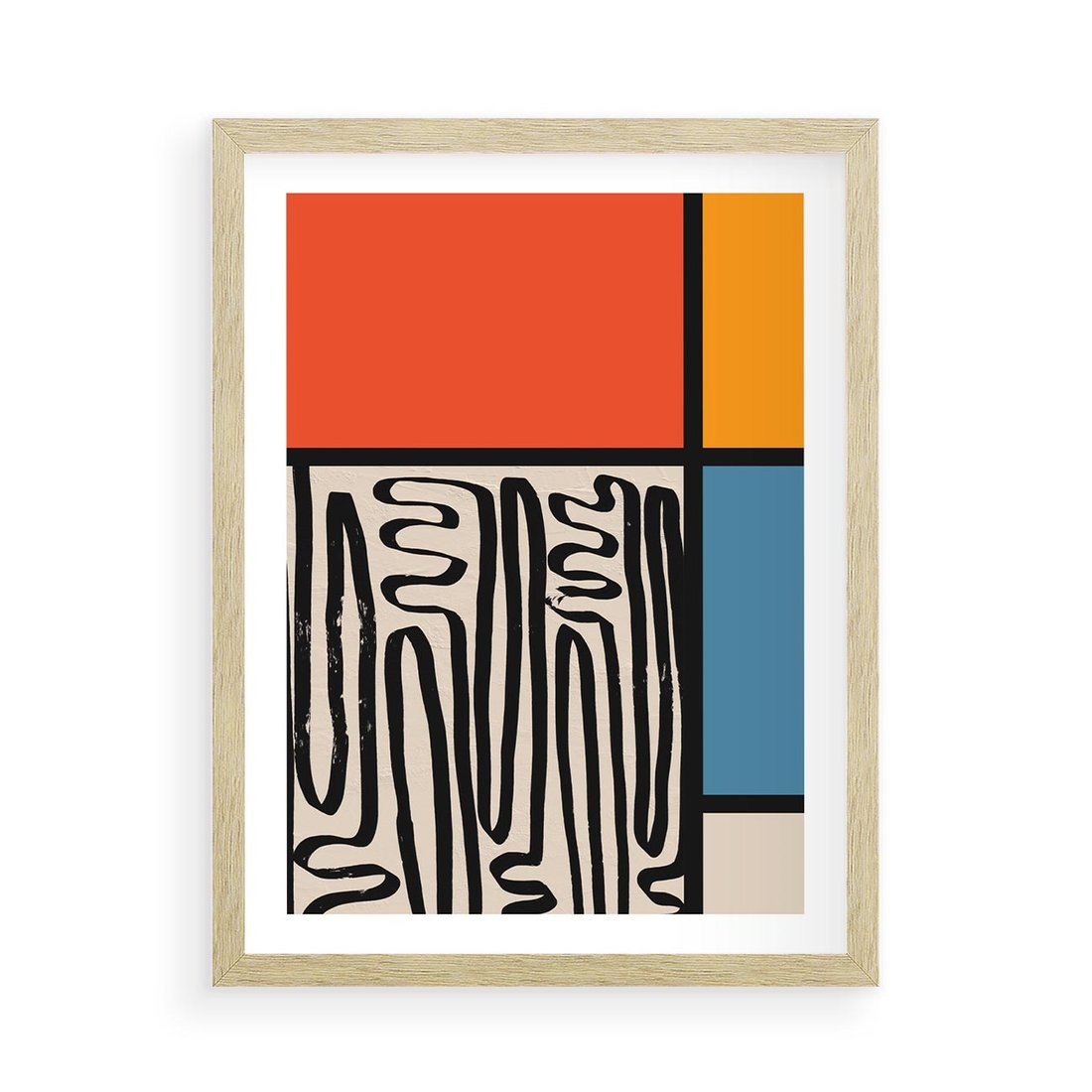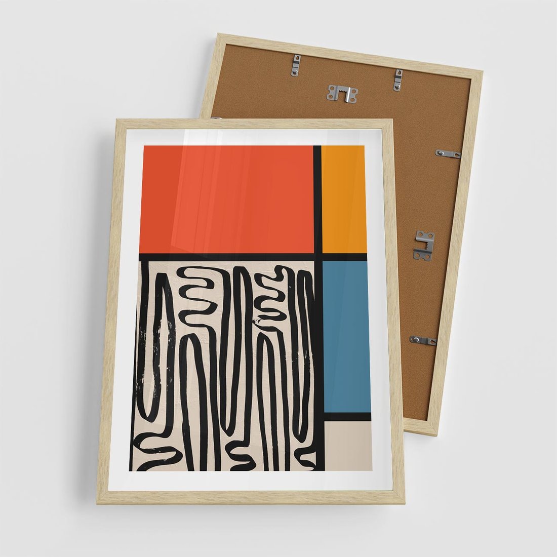 Plakat w ramie 50x70 - Podróżne Wibracje Serca - abstrakcyjny obraz, proste linie - rama drewno