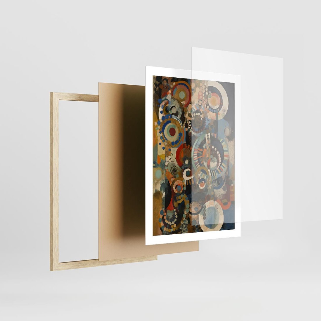 Plakat w ramie 50x70 - Podróżne Wizje Aberracji - abstrakcyjny obraz, mnogość kolorów - rama drewno