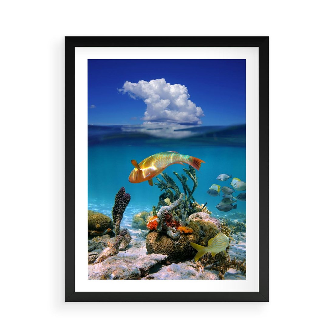 - Plakat w ramie 50x70 - Podwodna rafa koralowa: kolorowy oceanowy świat