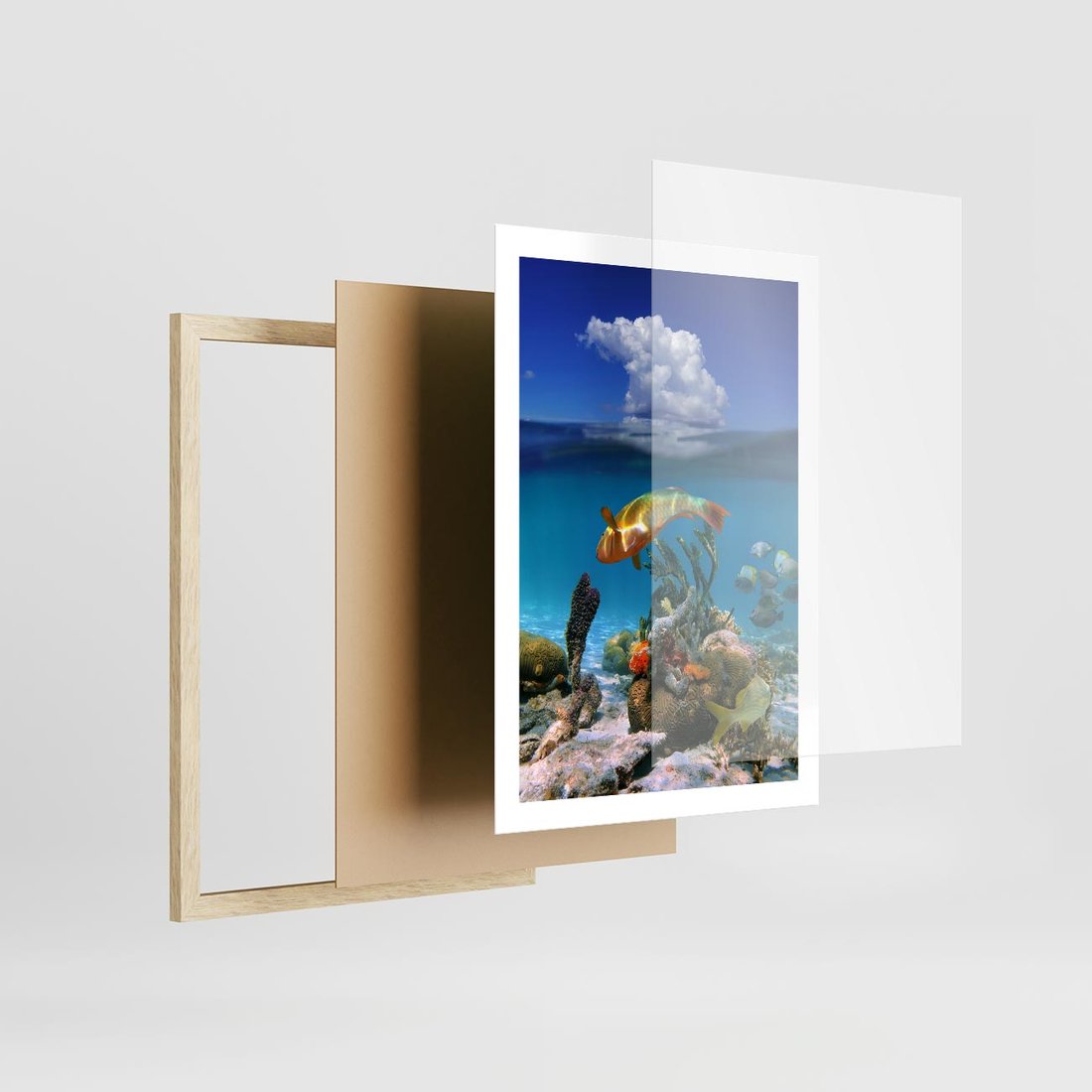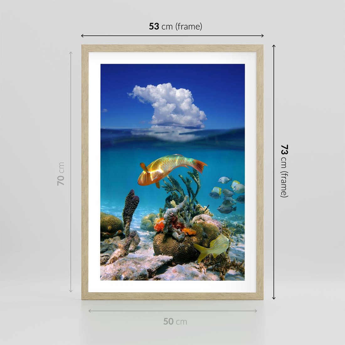 Plakat w ramie 50x70 - Podwodna rafa koralowa: kolorowy oceanowy świat - rafa, koralowa - rama drewno