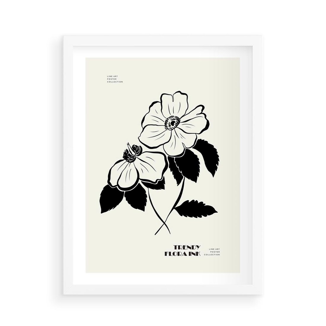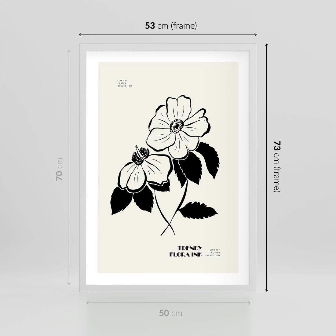 Plakat w ramie 50x70 - Poezja kwiecistej kreski - kwiaty, minimalistyczne - rama biała
