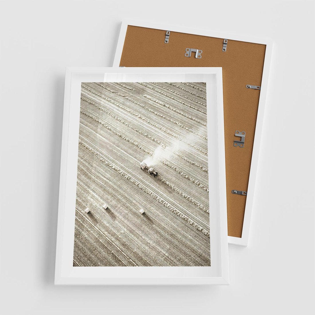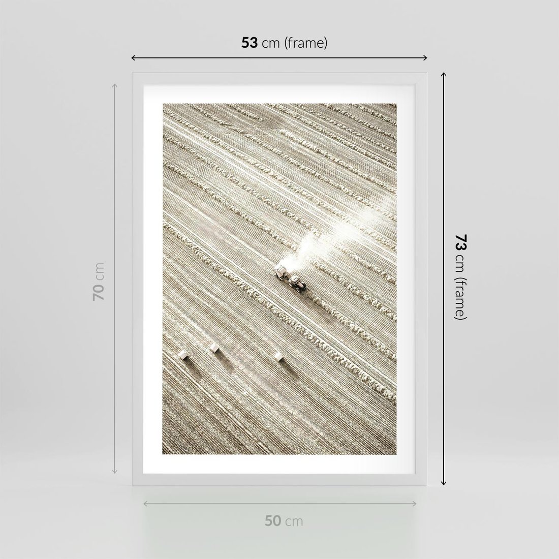 Plakat w ramie 50x70 - Pole i Żniwa na Malowniczym Zdjęciu - pole, traktor - rama biała