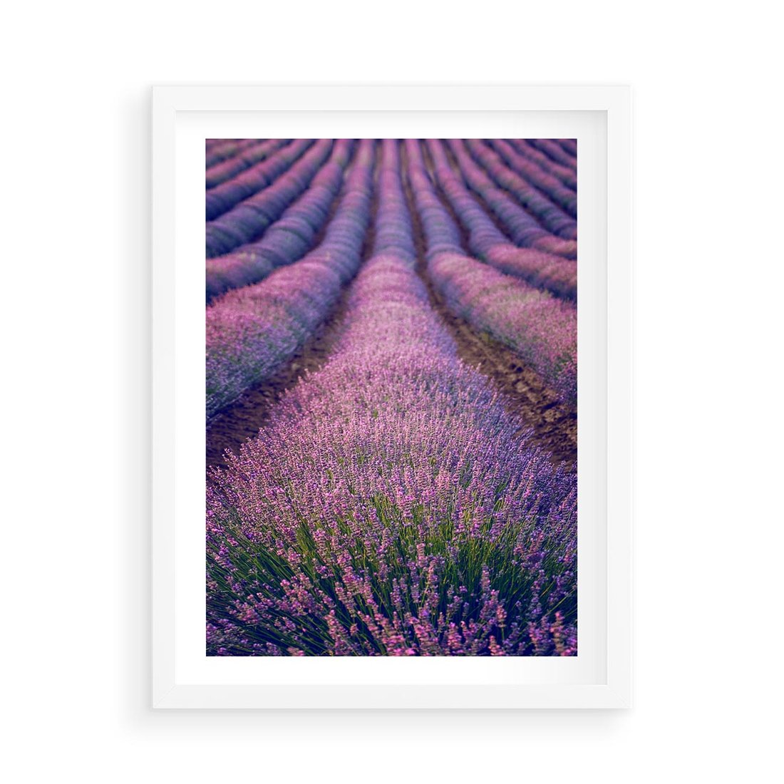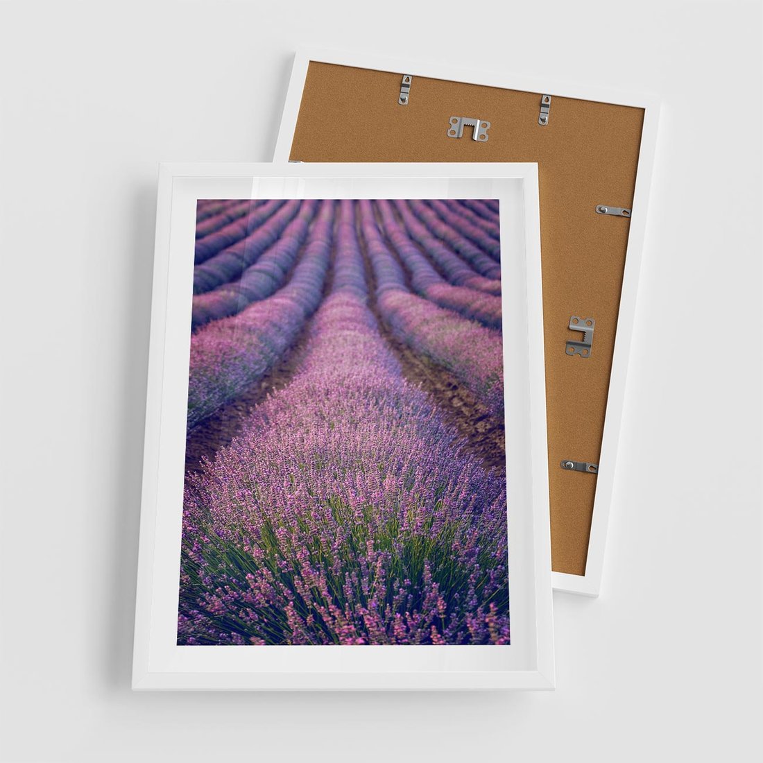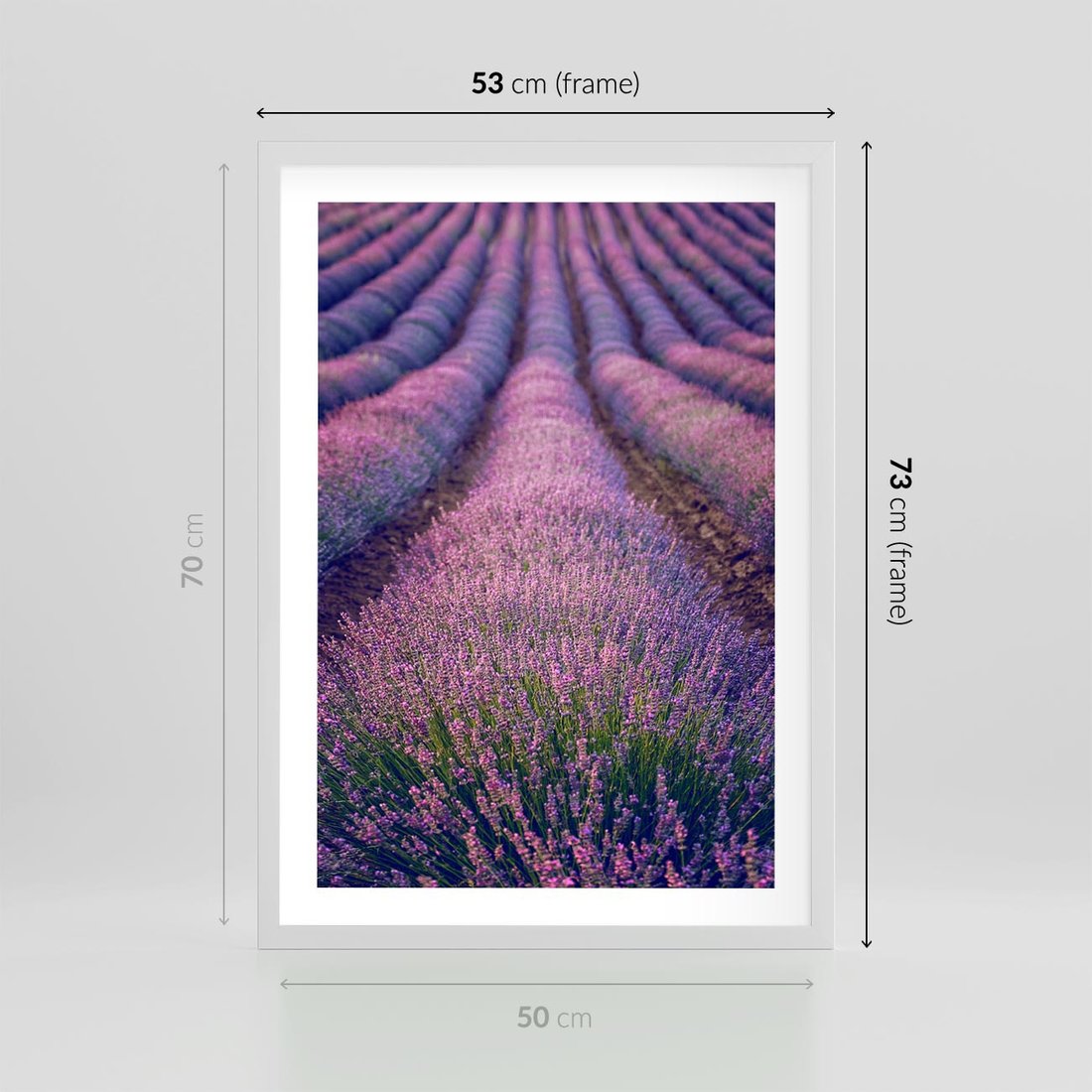 Plakat w ramie 50x70 - Pole Lawendy w Pełnej Krasie - pole lawendy, kompozycja - rama biała