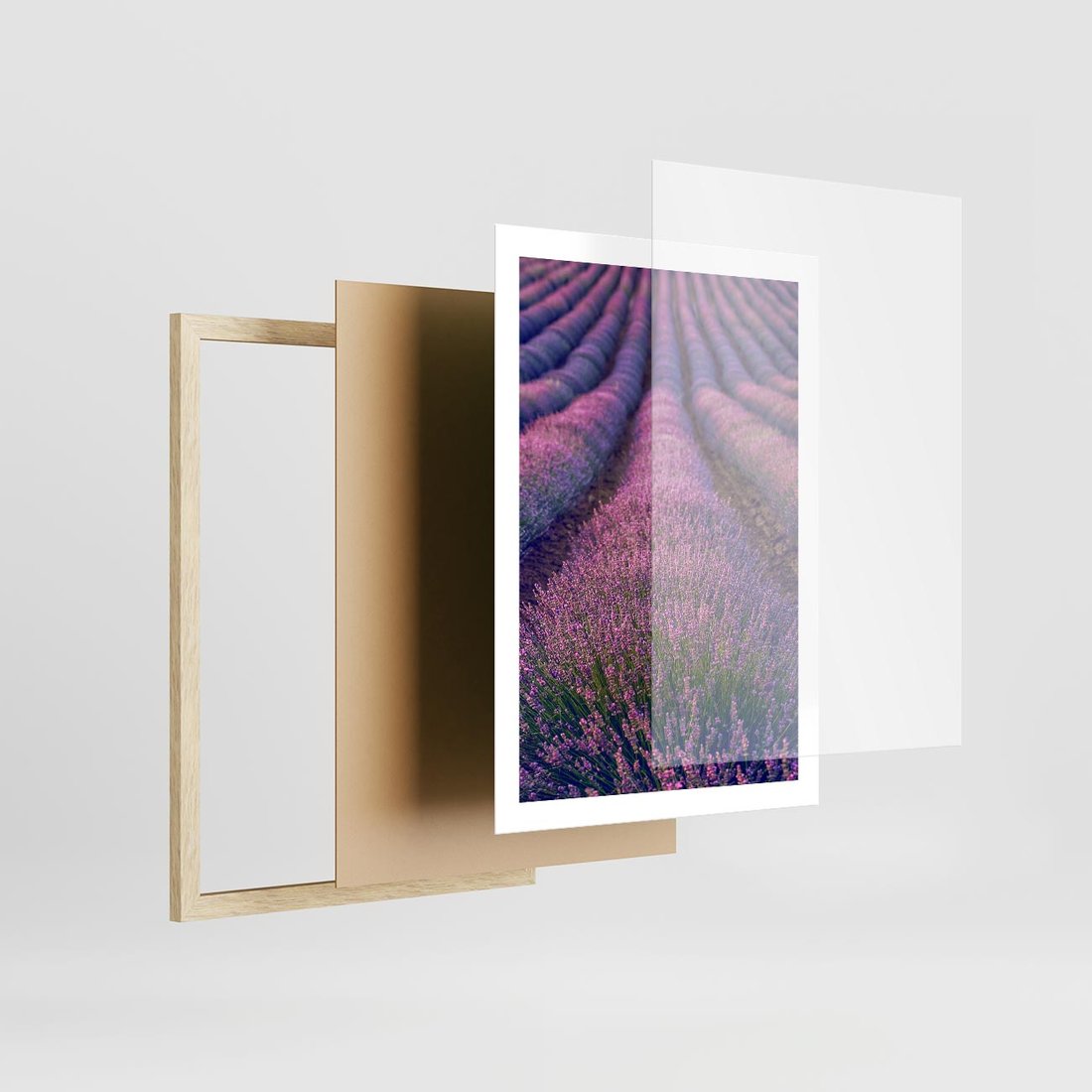 Plakat w ramie 50x70 - Pole Lawendy w Pełnej Krasie - pole lawendy, kompozycja - rama drewno