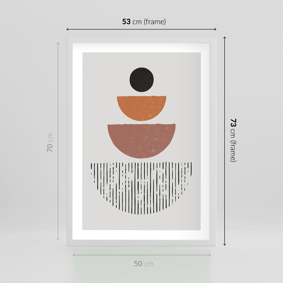 Plakat w ramie 50x70 - Półkola i Boho Akcent - geometria, półkola - rama biała